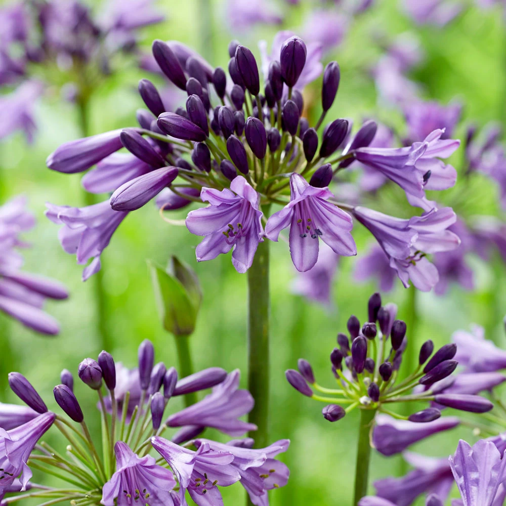 The deep purple flowers which are produced from dark purple almost black buds are unlike any other agapanthus.