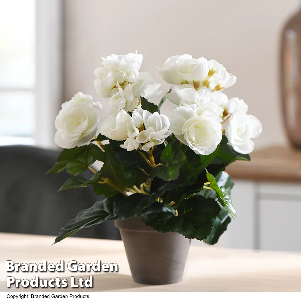 These vibrant artificial begonias make a charming addition to any room.