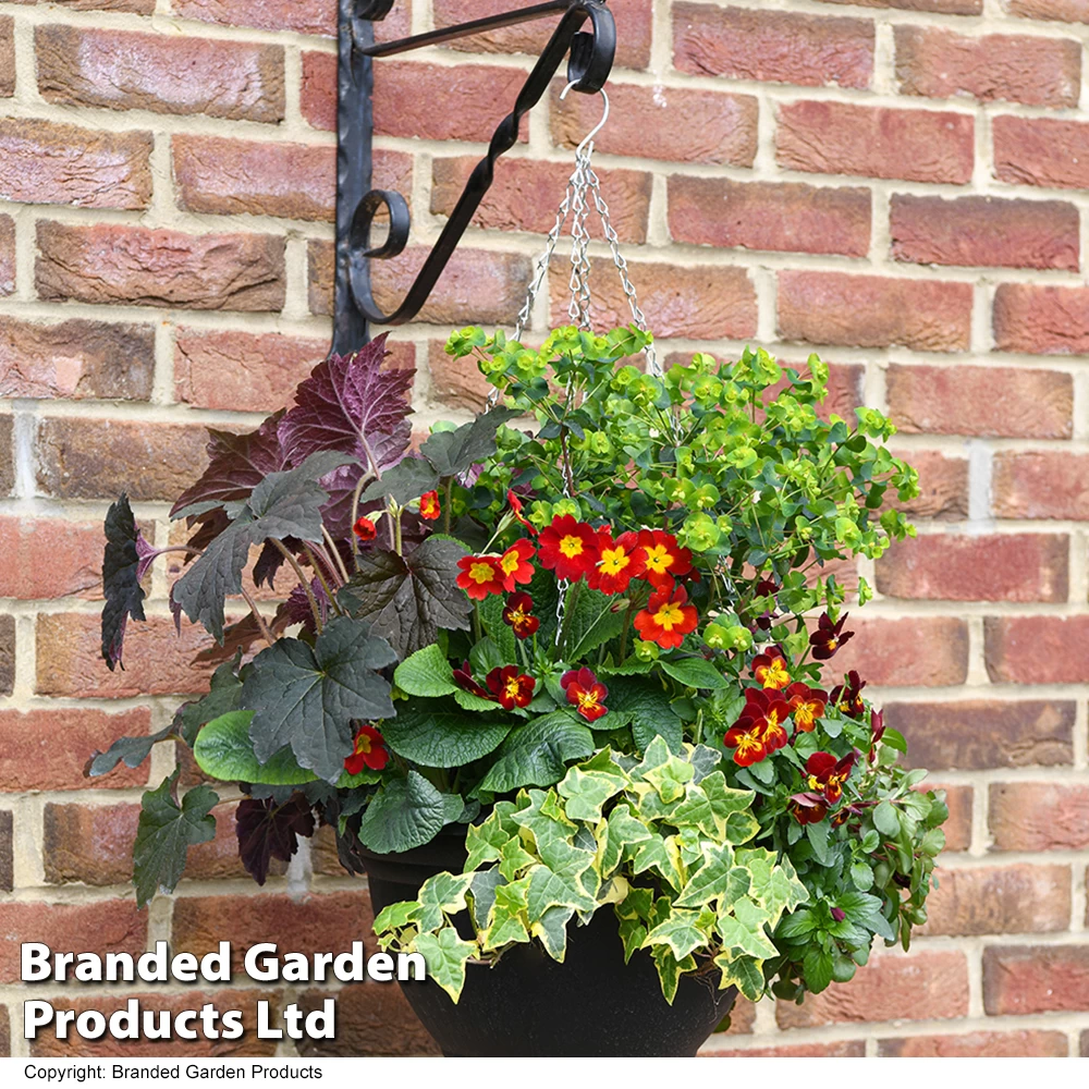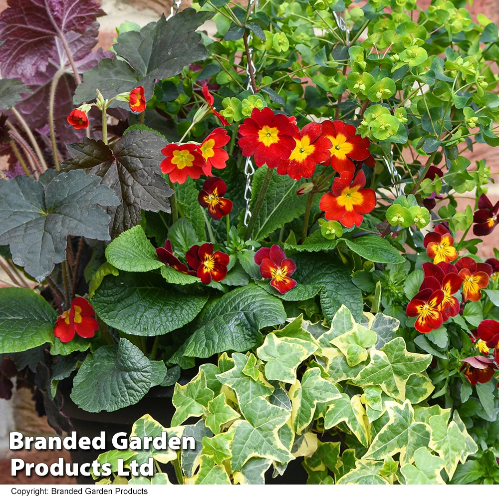A hassle-free, pre-planted basket featuring vibrant red tones, lifted by golden yellow highlights. Autumn Fire Collection contains a careful selection of autumn-spring flowers and enduring evergreen foliage to deliver many months of mood-boosting colour throughout the dreariest months of the year.