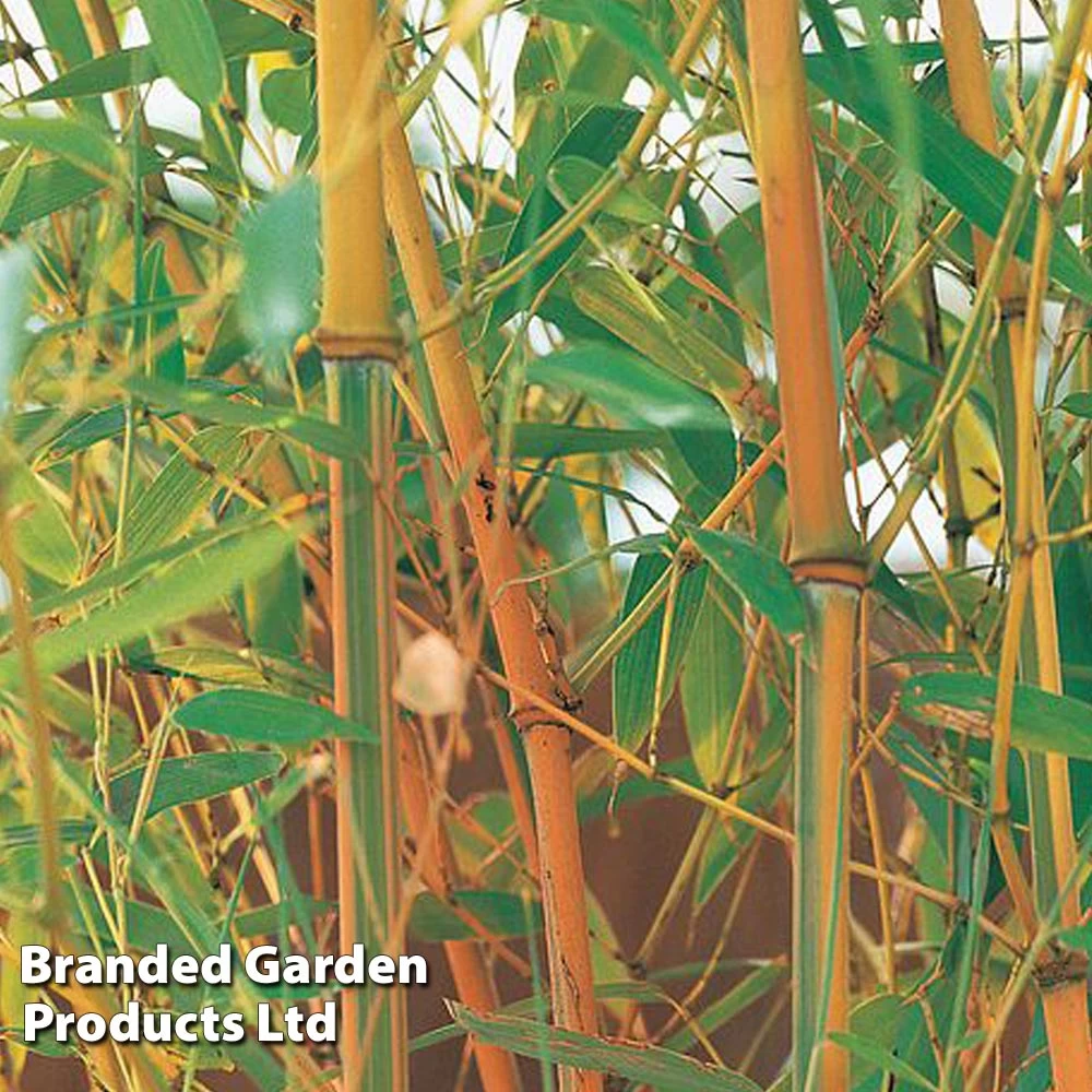 A non invasive but striking variety, Bamboo ‘Red Fountain’ will form clumps of upright stems to make bold statements in your garden. Each new stem emerges from the ground green, which then slowly transforms to a deep yellow and then changes again to a rich crimson red. The stunning stems contrast beautifully with the green foliage to make this a truly colourful specimen plant or as a fantastic screening plant too! Height: 300cm (118″). Spread: 150cm (59″) A non invasive but striking variety, Bamboo ‘Red Fountain’ will form clumps of upright stems to make bold statements in your garden. Each new stem emerges from the ground green, which then slowly transforms to a deep yellow and then changes again to a rich crimson red. When growing Umbrella Bamboo in pots, choose a soil based compost such as John Innes No. 3. Repot the plant, firming well into the new container, then water well and position in full sun or semi shade. Alternatively plant Umbrella Bamboos directly into borders in any moist, free draining soil. Bamboos dislike poor, dry soils. If your soil is particularly free draining, improve it by adding plenty of well rotted manure or garden compost prior to planting. Choose a sheltered position that is protected from cold, drying winds. Fargesia murieliae spreads via underground rhizomes so is best given space to grow. Alternatively surround the roots with a barrier to restrict the plantโs spread.