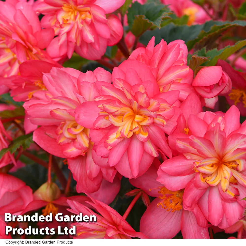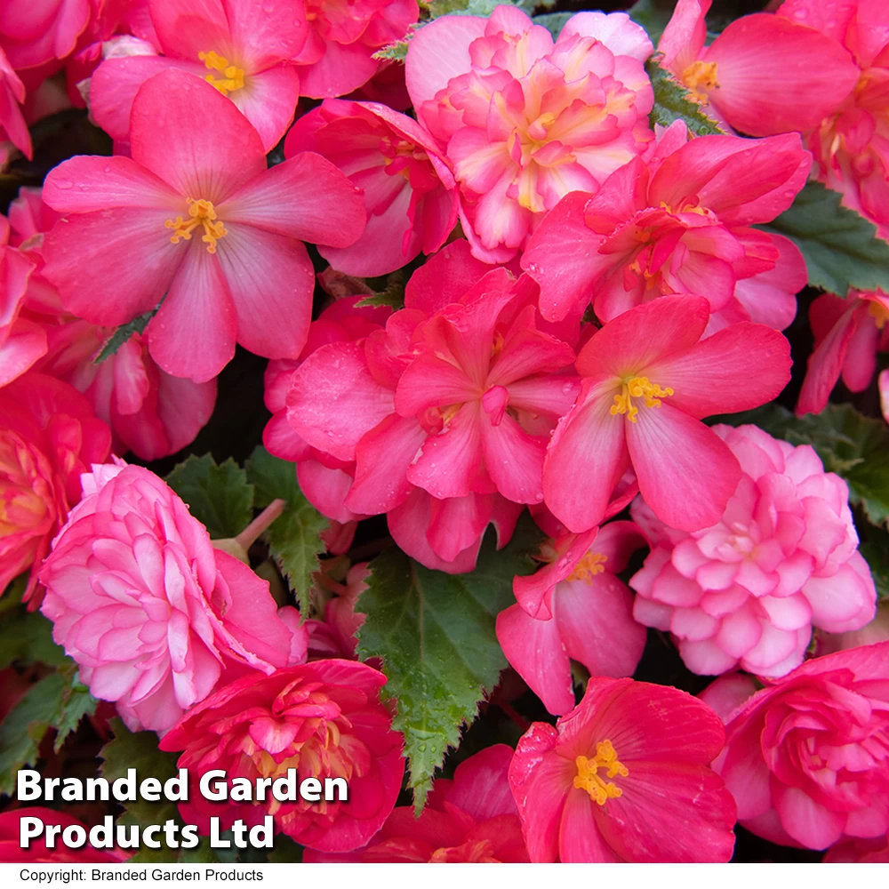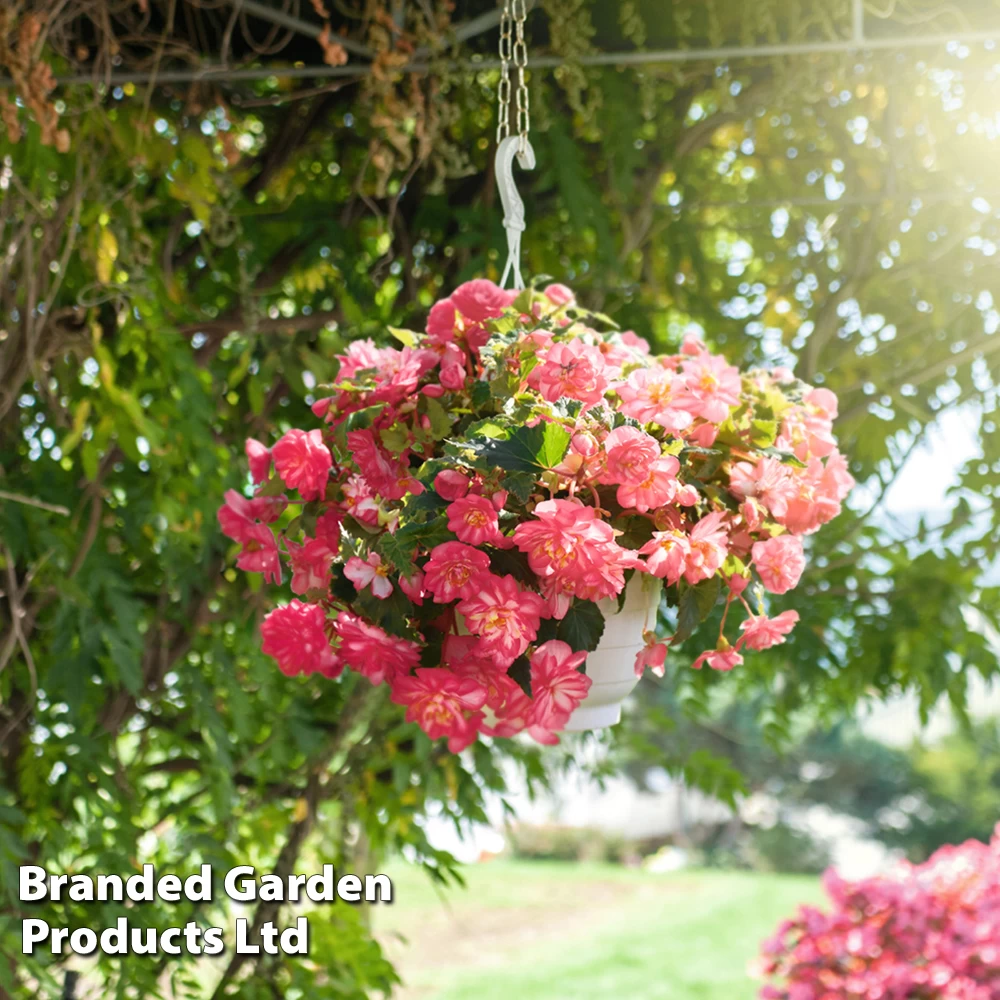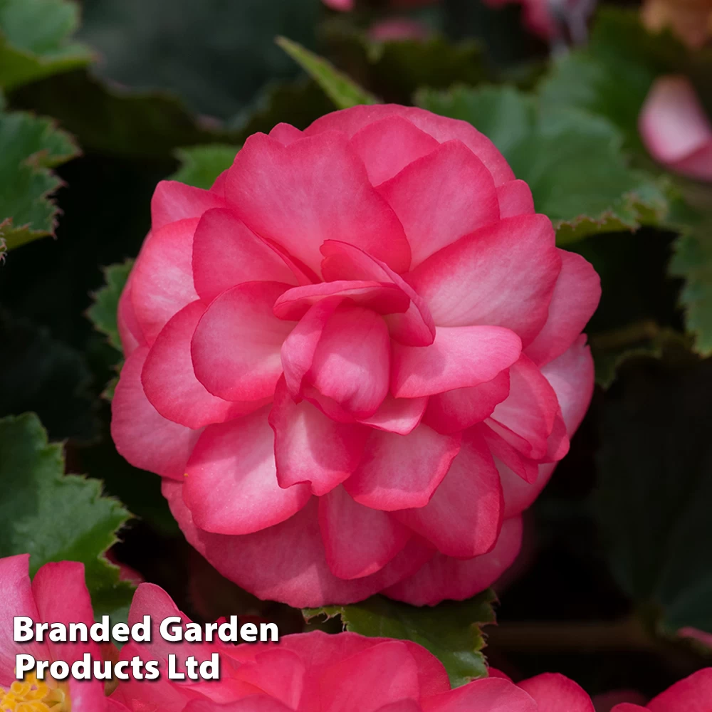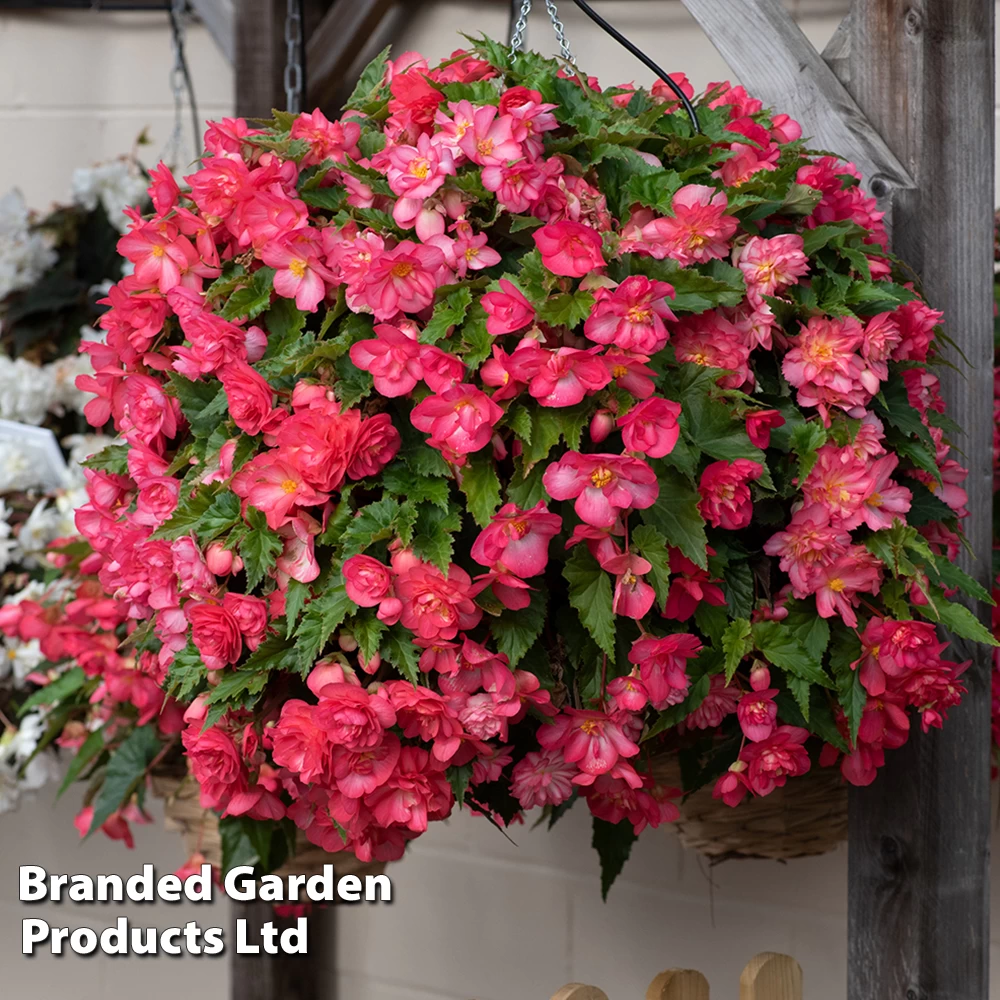 Large, frilly, fully double white blooms adorned with a rose picotee. Each radiant bloom measures up to 10cm across. Grow your Garden Ready Begonia plugs in a sunny or semi-shaded position that is protected from strong winds.