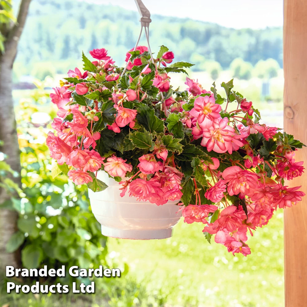 When other bedding plants have long faded, Begonia ‘Nonstop Joy Rose Picotee’ will keep performing, resisting poor weather and providing vibrant colour right through to autumn. This semi-trailing, compact variety is well branching, filling out containers and hanging baskets with dense mounds of flowers and no bare spots. Height and spread: 23cm (9”).