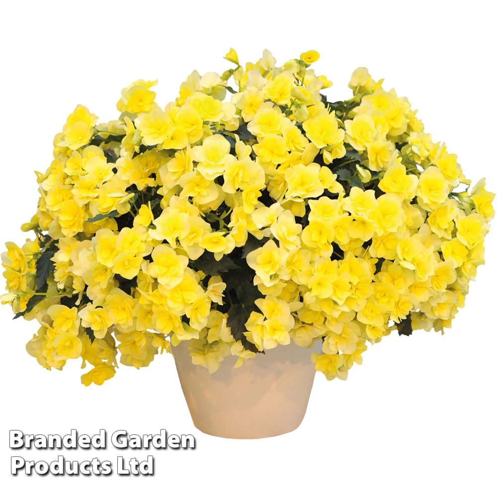 Masses of cascading lemon-yellow blooms smother this compact, spherical plant to create a mound of colour throughout the summer months. Begonia plugs can be planted straight into Flower Pouches™, but are best potted on first and grown on in bright, frost-free conditions if to be displayed in baskets, window boxes or pots. They can be transplanted into their final containers once they have increased in size. When all risk of frost has passed, acclimatise Begonias to outdoor conditions over a period of 7 to 10 days, before placing them in their final positions. Choose a sunny or semi shaded position that is protected from strong winds.