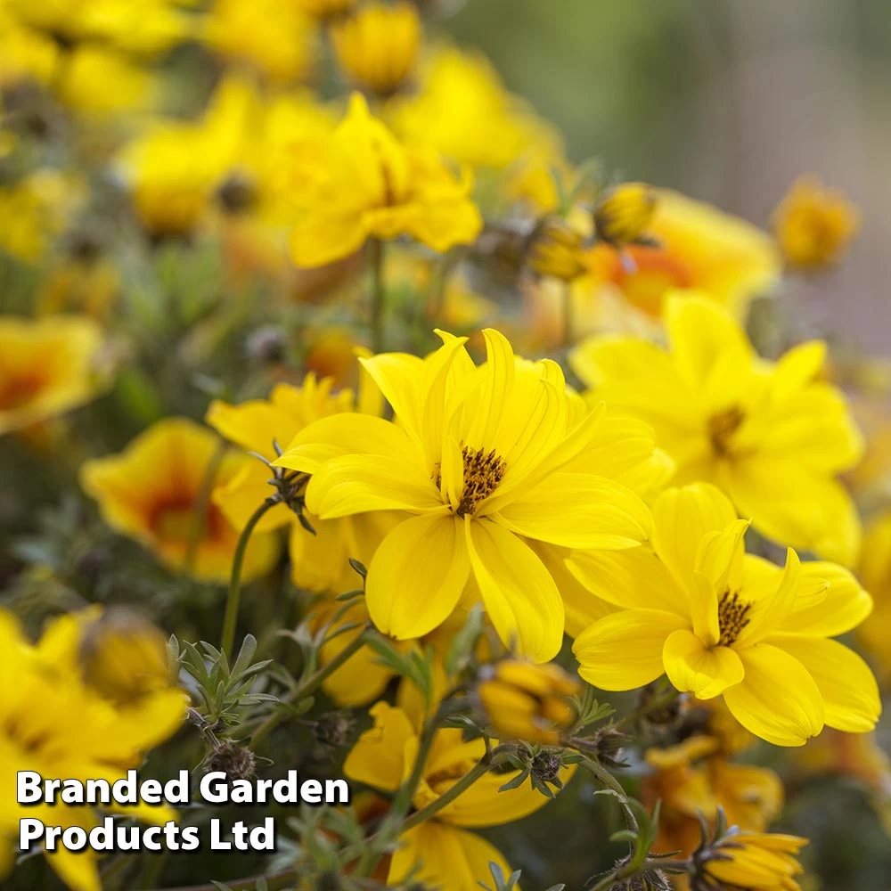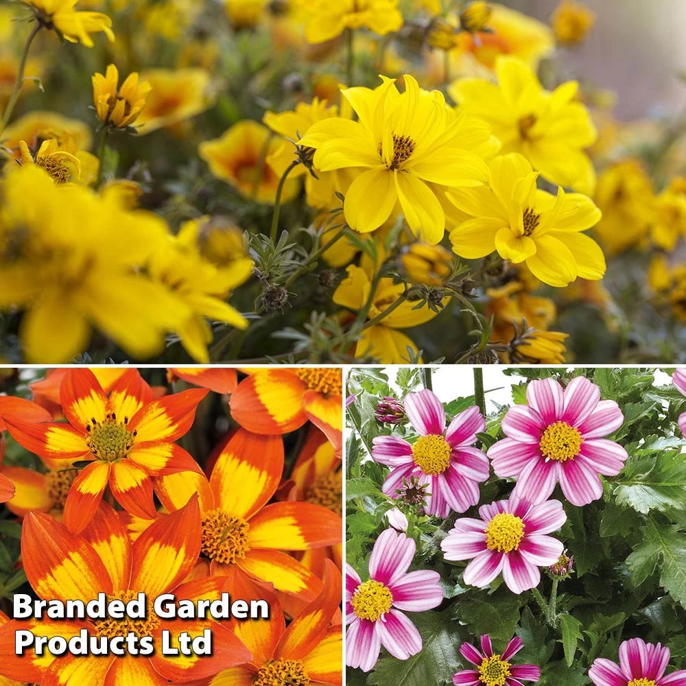 - Modern breeding has made huge advances in improving Bidens, transforming these somewhat straggly species into compact, bushy bedding plants. This colourful collection brings together 3 recent introductions. Pot up bidens plugs and grow them on in frost free conditions for transplanting at a later date. Pinch out the growing points while the plants are still small to encourage more stems. Regular pinching will create a shapely compact plant that is perfect for containers. When plants are well grown acclimatise them to outdoor conditions over 7 to 10 days prior to planting them in their final positions. Grow Bidens plants in containers, hanging baskets and borders in any well drained soil in full sun.