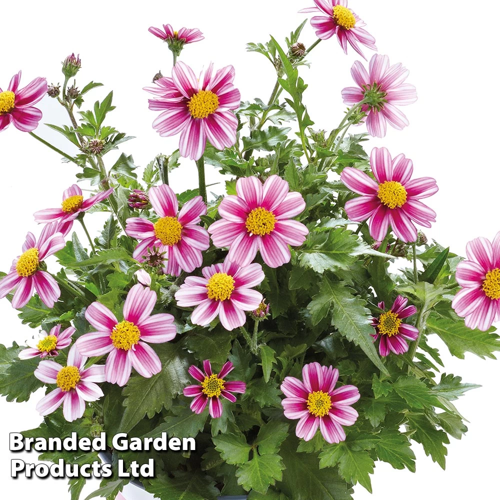 - Bidens ‘Pink Princess’ – Feathery foliage and pink bicolour blooms.