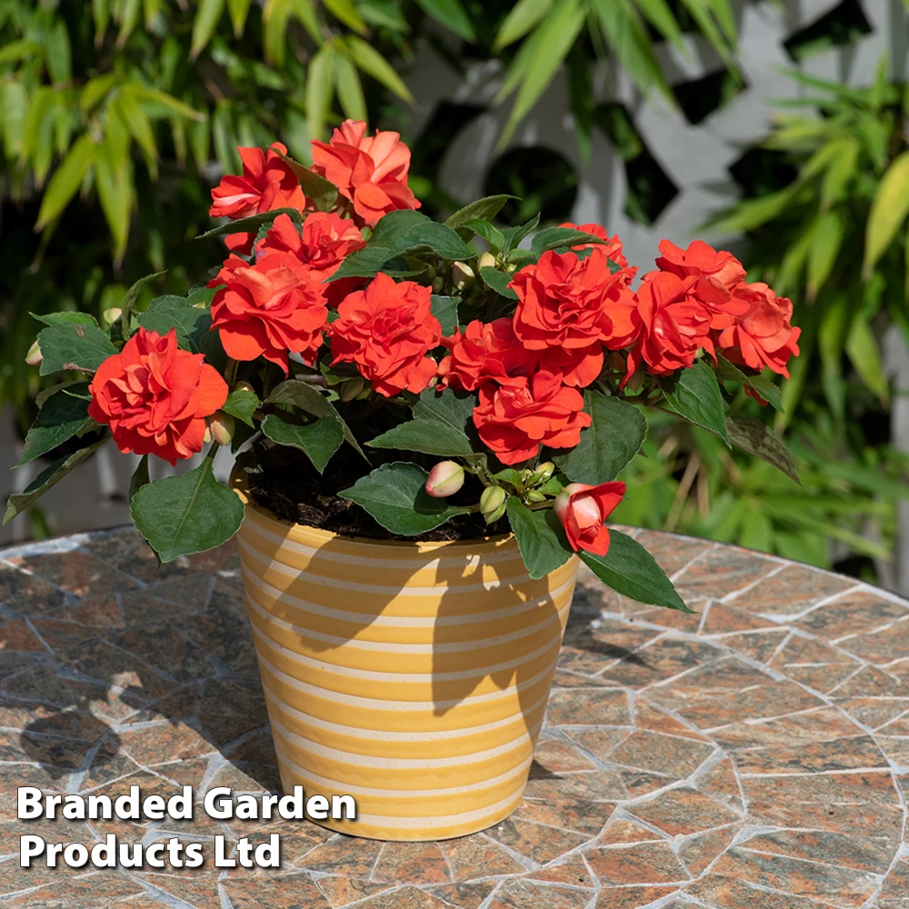 A double variety which is highly resistant to mildew as well as being exceptionally pretty! Grow busy lizzies in any well drained soil, in sun or semi shade. Feed and water frequently throughout the summer to promote an endless supply of colourful busy lizzie flowers.