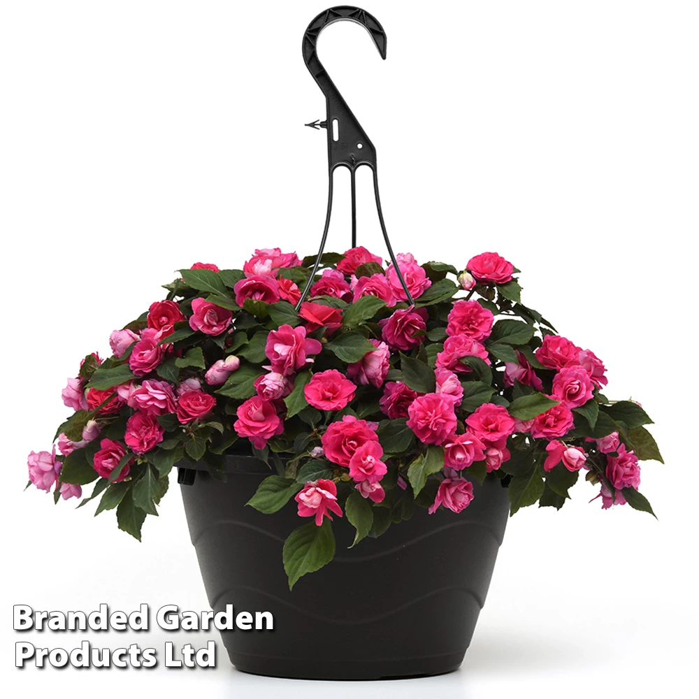 A double variety which is highly resistant to mildew as well as being exceptionally pretty! One of the award-winning Glimmer™ series, Busy Lizzie ‘Glimmer Hot Pink’ forms neat, bushy mounds of foliage smothered in double flowers in a brilliant shade of pink. Each exquisite flower resembles a miniature rose. Plant Busy Lizzie ‘Glimmer Hot Pink’ in containers, baskets and window boxes where from May to September its dazzling colour will illuminate shady spots. Height: 40cm (16in). Spread: 30cm (12in).