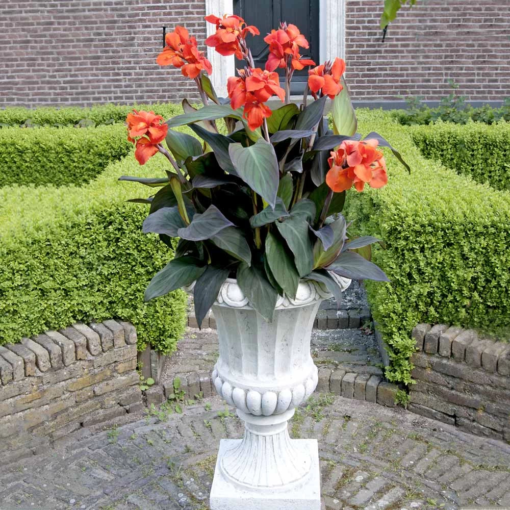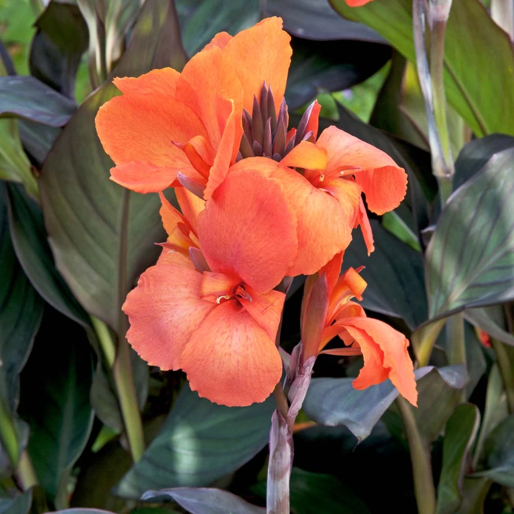 The Cannova Bronze Orange is a Canna plant for our English climate! Cannas plants are vibrant tender perennials that produce bold leaves and eyecatching flowers in various tropical shades. It is the perfect plant for summer bedding, both containers, and borders but does well in cool conservatories in summer. Canna Cannova plants are shorter than your average canna, making them ideal for every garden or small patio..