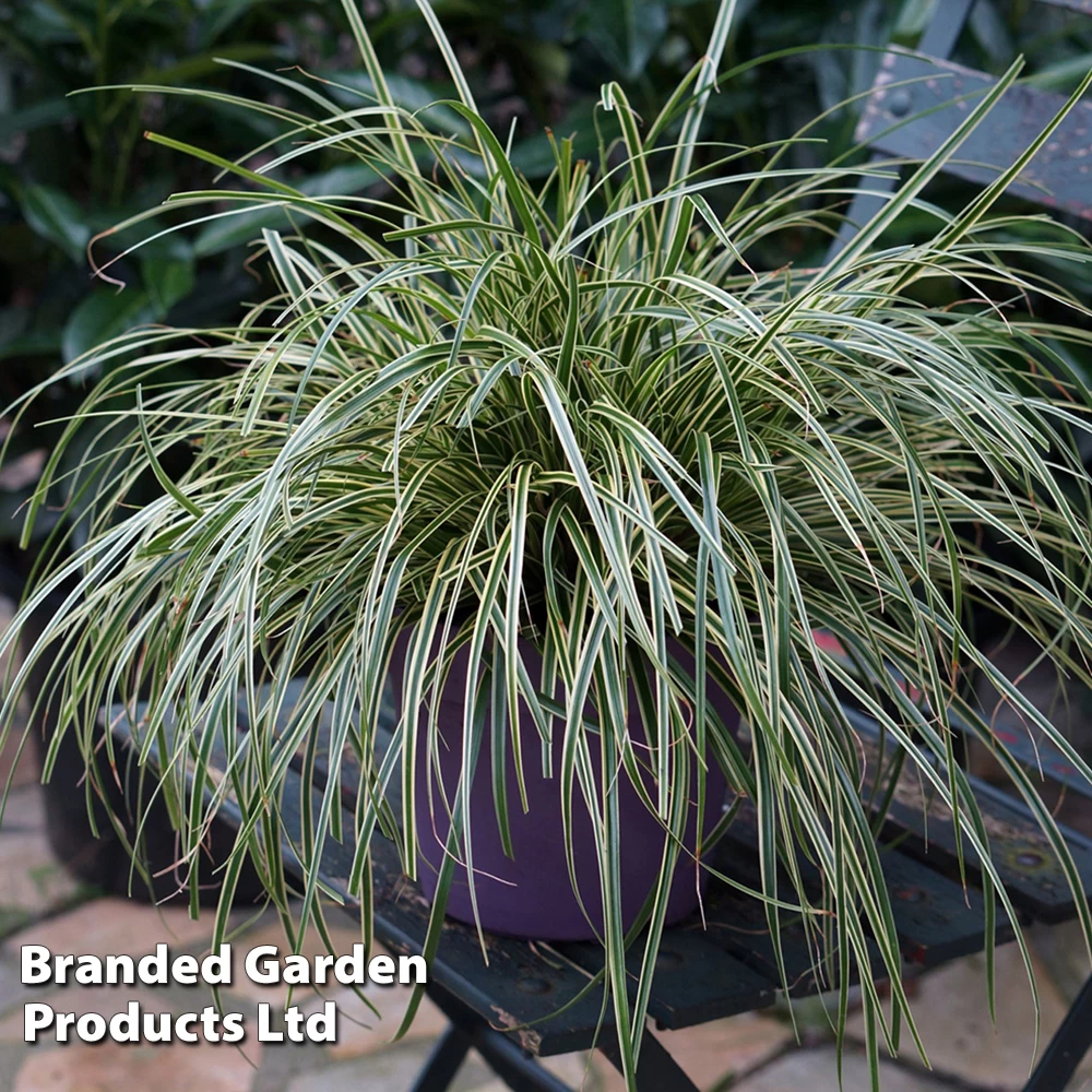 Carex oshimensis ‘Evercream’ is an evergreen, clump-forming grass with long, gracefully arching foliage, variegated dark green with creamy-yellow margins. Plant Carex into any moist, but well-drained soil in sun or partial shade. Brilliant for patio containers, mixed with flowering plants. Use a John Innes no. 3 soil mixture when planting into pots.