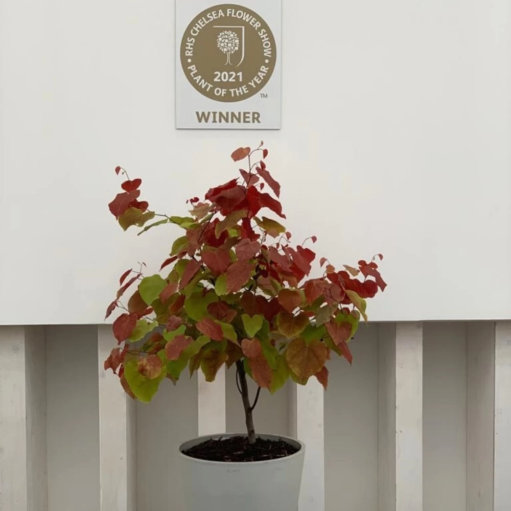 This is a real winner and in our opinion is the best Cercis on the market. Its main benefit which is completely unique is the stunning foliage that emerges as bright glossy red and when it fades it still remains a lovely burnt orange and then to yellow.