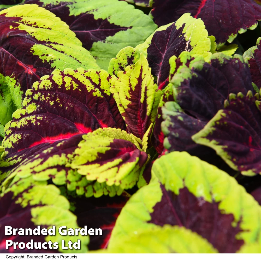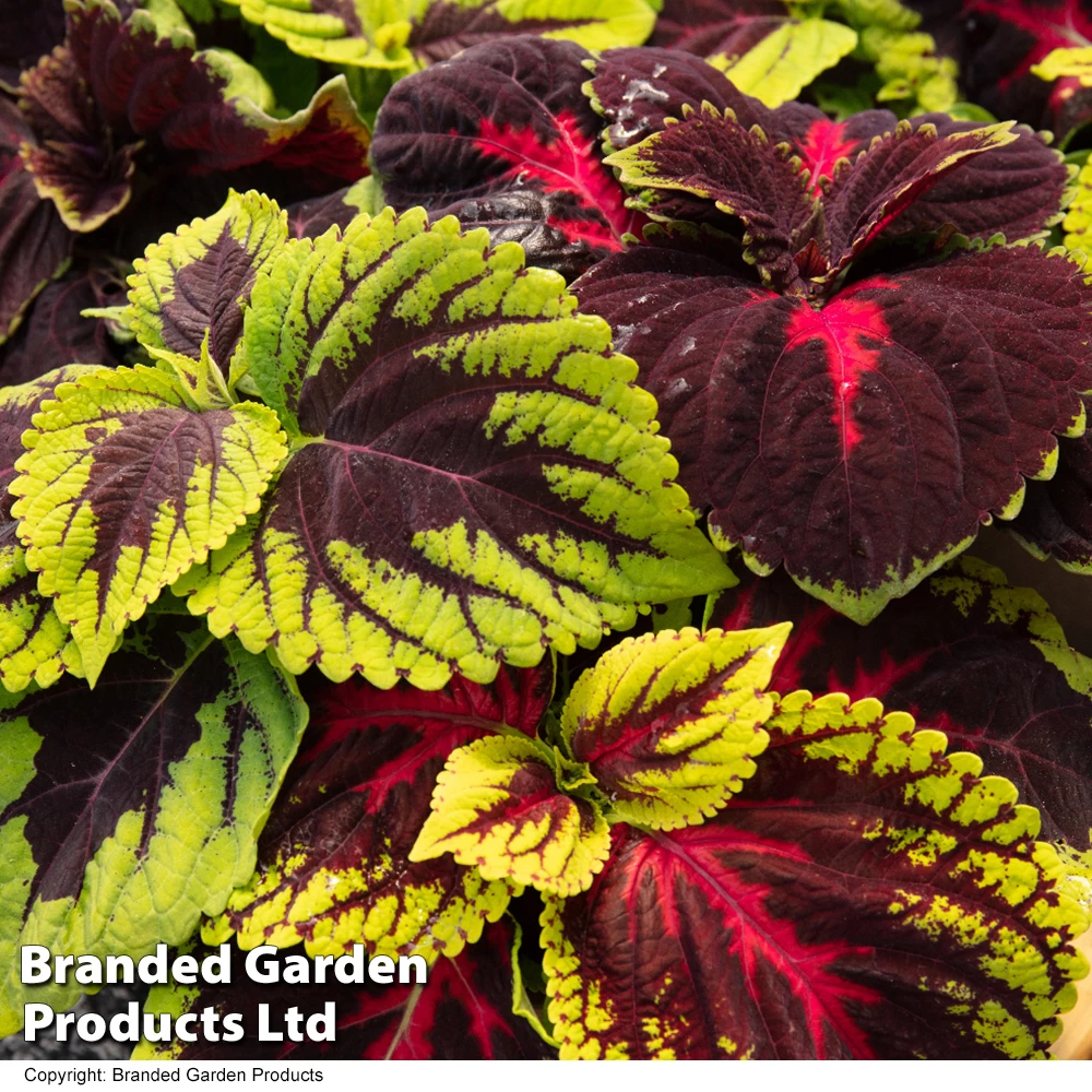 Coleus are flamboyant foliage plants which come in a range of fantastic colours and make sensational statement plants in patio pots, beds and borders. They can even be used as house or conservatory plants. These tender, tropical perennials are generally grown as annuals. They are fast-growing and their velvety foliage in reds, purples, greens and yellows with intricate patterning and serrated margins provide colour and texture throughout the season. Coleus are incredibly versatile, easy to grow, low maintenance and can even thrive in shade. Although flowers are produced, these are insignificant and best removed.
