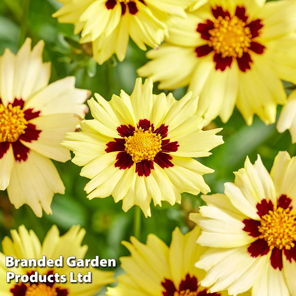 Big, bee-friendly flowers that go on blooming for weeks! Coreopsis ‘Solar Moon’ bears masses of pale yellow flowers with contrasting maroon blotches.
