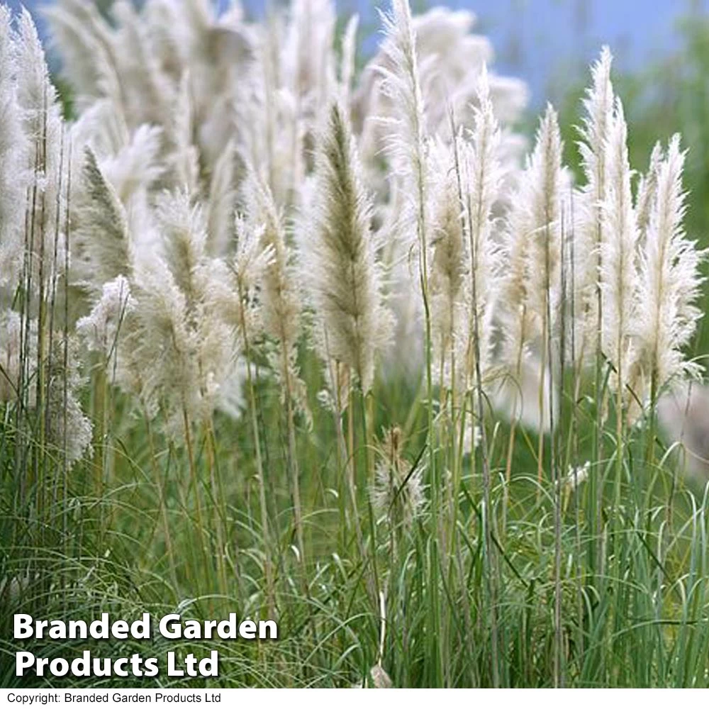 The tufted evergreen plants of Pampas Grass are perfect for filling a gap in a border, and ‘Pumila’ is good for small gardens too. Plants give all year interest for the garden, although are at their best in August when the silvery plumes appear from the very centre of the grassy plants. Height and Spread: 1.2m (3.9′).