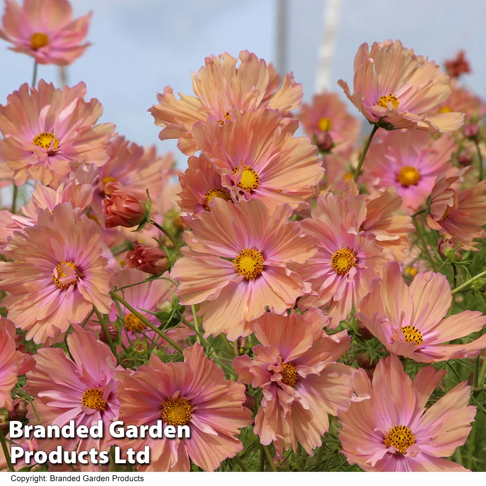 Cosmos ‘Apricotta’ is an exceptional new variety, distinguished by its extraordinary colour palette. Petals in shades of soft apricot, flushed with pink and finished with a raspberry centre and golden eye. This tall selection is perfect for the back of the border and its long stems are great for bouquets. Cosmos are indispensable garden annuals, flowering their socks off for months and attracting masses of beneficial pollinators. This fabulous variety is a very well-deserved Fleuroselect Novelty Winner. Height 80cm (31in). Spread 45-60cm (18-24in).