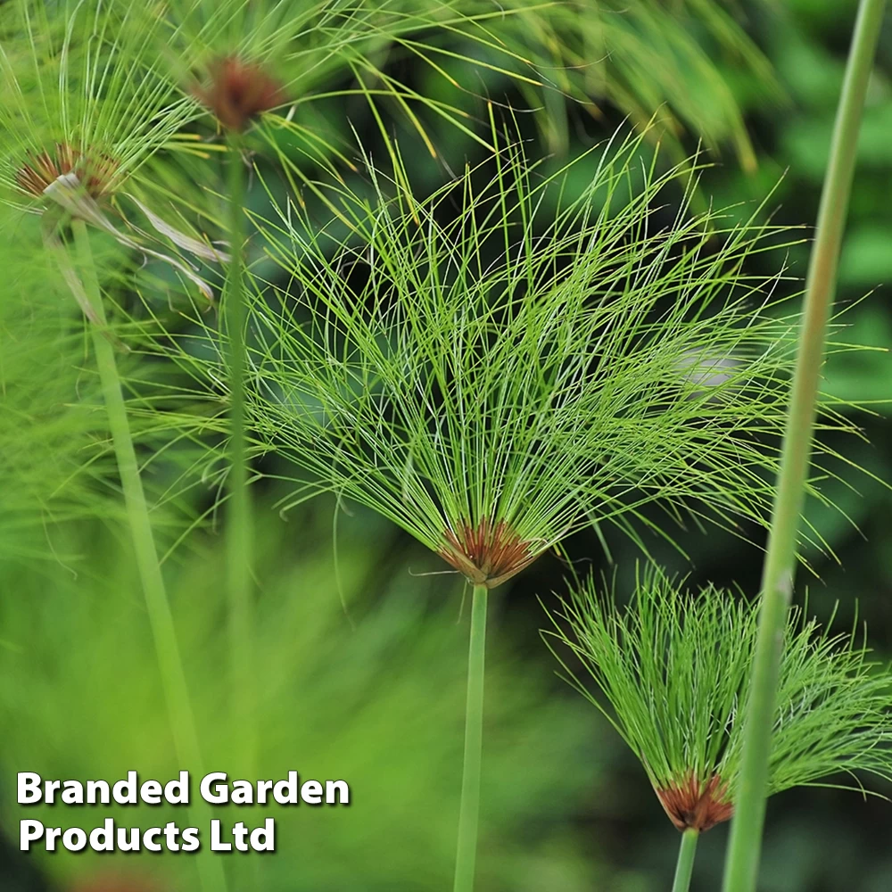 Plant Cyperus papyrus into consistently moist, boggy soil, or in the shallow margins of ponds to a maximum depth of 10cm (4″) below water level. Choose a position in sun or semi shade.