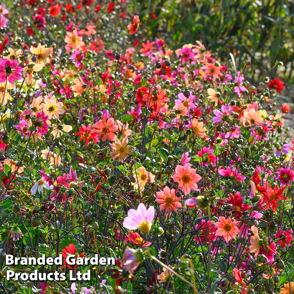 These dazzling dahlias have been carefully chosen to provide a feast of nectar for pollinators as well as a feast of colour for your eyes! Plant Dahlia tubers outdoors in April after all risk of frost has passed. Choose a sunny position in moist well drained soil. Prepare the soil by digging in plenty of well rotted manure or compost. Plant tubers at a depth of 15cm (6″) and water well. Alternatively, start tubers into growth in pots of compost in a frost free greenhouse. Transplant them into their final positions outdoors in June.