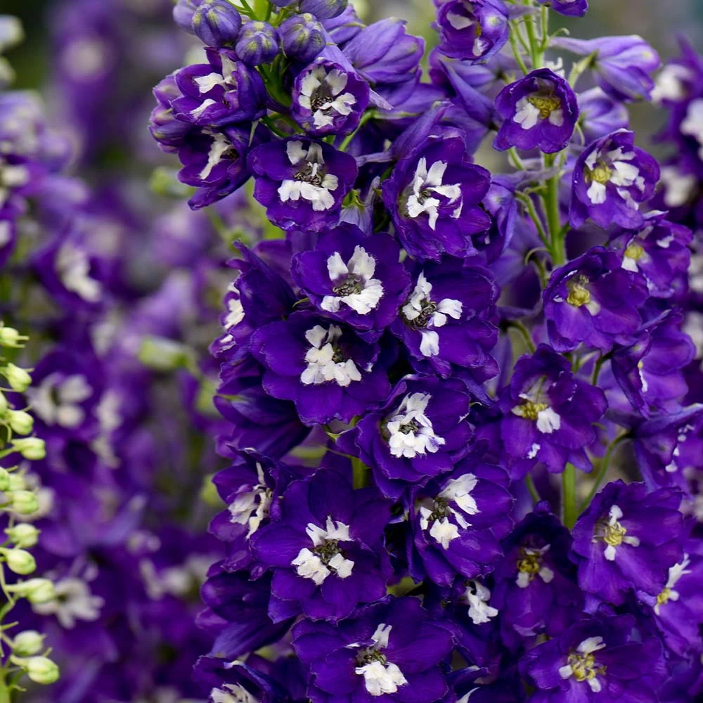 Delphinium Dark Blue & White Bee has dark blue flowers each with an out of the ordinary white centre in the shape of a bee, no wonder bees love these!