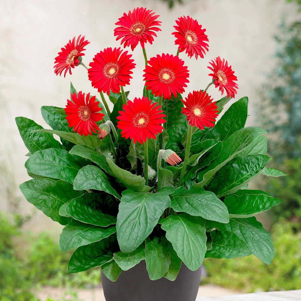 Dramatic gerberas are no longer just a houseplant – these hardy plants will thrive in the garden. And, once established, each plant will produce up to 100 blooms during the course of their long flowering season. Flowers April-October. Height 20-30cm (8-12″). Sweet Love – Bright vivid red flowers.
