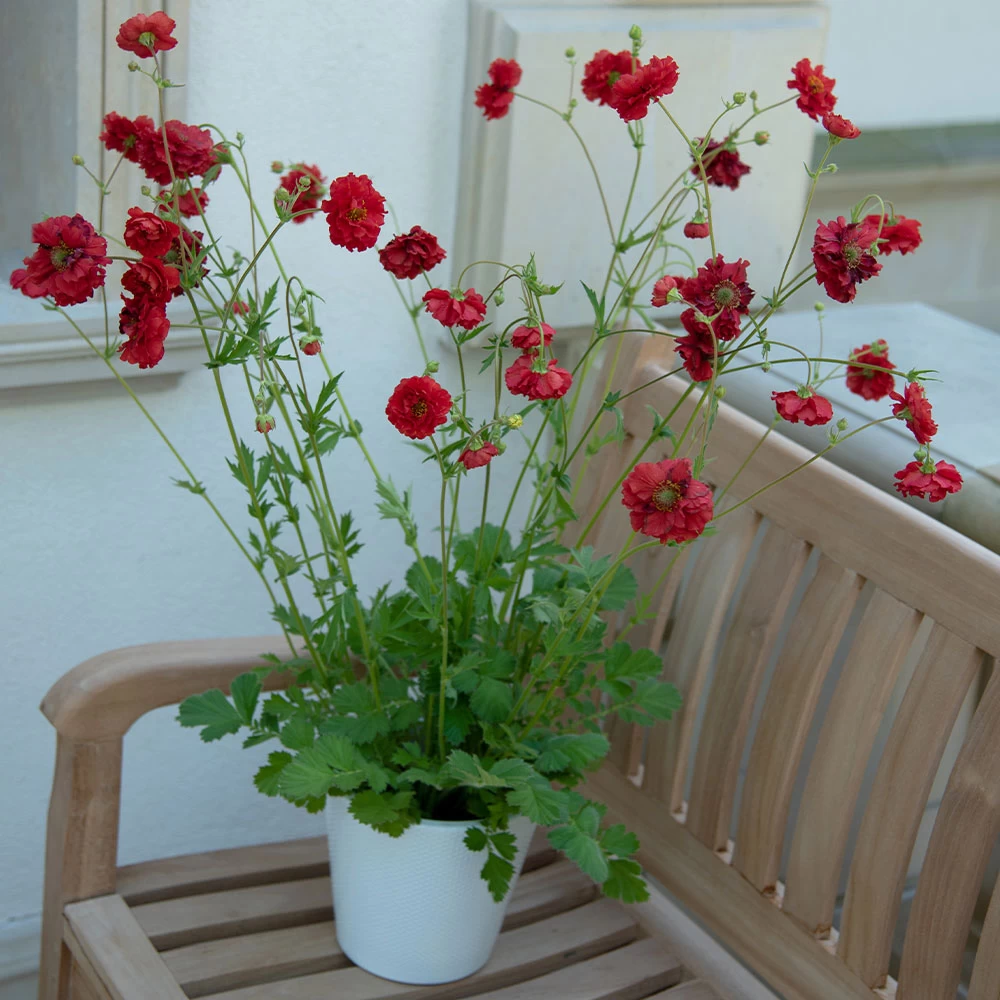 Brand new for 2021, Geum ‘Samba Sunset’ is a world exclusive that comes from the latest breeding programmes offering larger blooms and a free-flowering display. The results are brilliant, as giant, double flowers, twice the size of traditional varieties, grow in an abundance throughout the summer. The striking scarlet blooms sit upon slender stems above a mass of pretty, green foliage. This variety brings a unique twist on a classic cottage garden favourite and provides a vibrant display of summer colour which can be incorporated into perennial borders and patio pots. It is also much-loved by pollinating insects! Height: 60cm (24”). Spread: 45cm (18”).