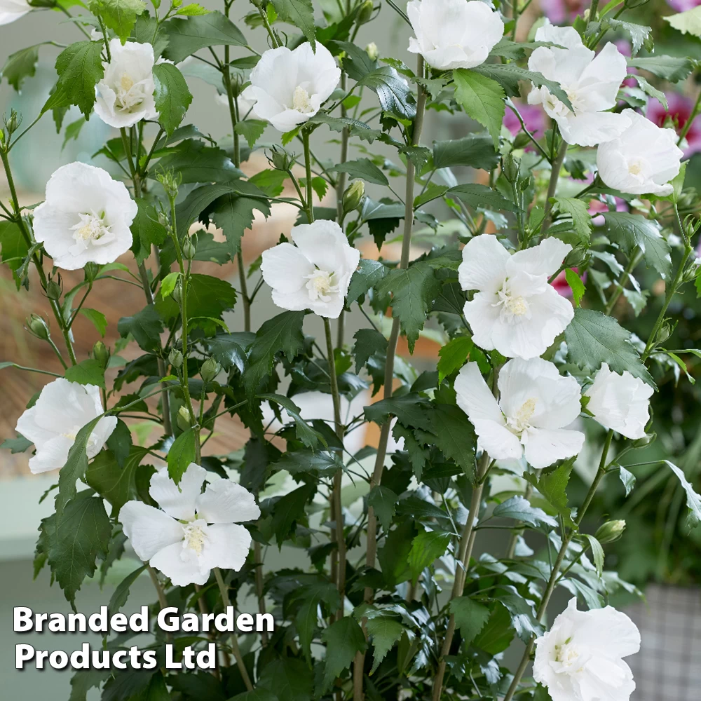 For small gardens and tight spaces, you can’t beat these Flower Tower hibiscus. Their columnar habit can eventually reach up to 3 metres but their height is easily controlled by pruning. Their modest width is perfect for narrow borders, containers, balconies and courtyard corners where the sky’s the limit. Growing up and up into densely branching towers packed with blooms from late summer to autumn, they provide a spectacular focal point which can be used to frame architectural features.