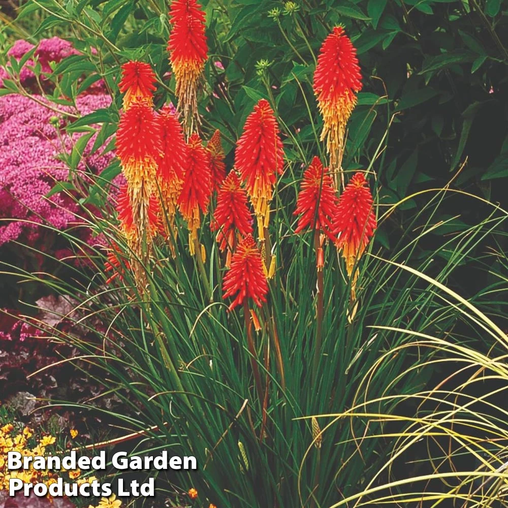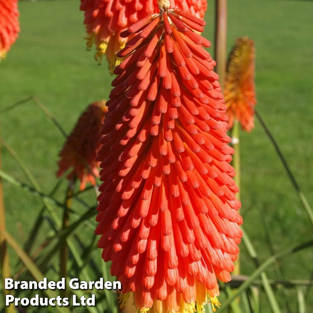 Part of the ‘Popsicle Series’, this exotic looking Kniphofia produces its orange and yellow flower spikes over a particularly long period. From June to October the prolific blooms rise above clumps of evergreen grassy foliage. Red Hot Poker ‘Papaya Popsicle’ is a compact dwarf variety that will easily fit into the smallest borders. Kniphofia are reliable perennials with a tough disposition and good drought resistance. Height: 35cm (14″). Spread: 40cm (16″). Plant red hot poker plants in a sunny or semi-shaded position, in any rich, fertile, well drained soil.