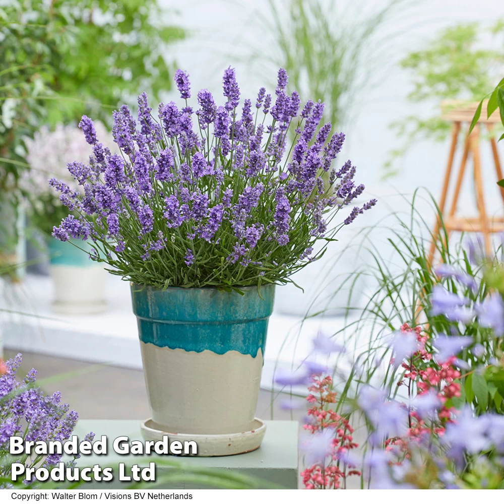 Lavender ‘BeeZee® Light Blue’ is more vigorous and free-flowering than ‘Hidcote’, with fat, light blue flower spikes borne in continuous abundance from summer to autumn. It is also more compact and uniform – making it perfect as a tidy pot specimen, edging paths or as low hedging, without the danger of flopping over. The foliage is slightly coarser than ‘Hidcote’ but shares the same colour – the evergreen leaves are silver-grey in winter, turning grey-green in summer. Flowering readily in its first year, you can look forward to the smell and colour of this rewarding new variety, plus the constant hum of bees enjoying its masses and masses of flowers for months on end. Height 40-50cm (16-20in), Spread 40-50cm (16-20in).