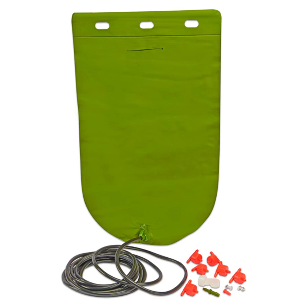 This irrigation system comes with a large 10.5 litre water bag that holds over 2 gallons of water, five metres of irrigation tube that can be cut to your individual requirements and six independently adjustable drippers. A full water bag will last for over 24 hours so that you can go away, or rest from watering the plants daily keeping your plants healthy.