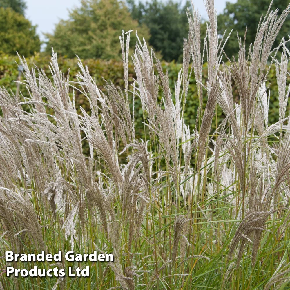 For unusual silver hues in beds and borders in late summer, look no further than Miscanthus sinensis ‘Silberspinne’. Tall stems, that are ideal for cutting and adding to an indoor floral display, will produce long, feathery panicles of flowers that start off with a bronze tint, then fade to a silvery finish by autumn. Following a long, hot summer, the flower stems will be even more numerous than usual on this hardy perennial grass, giving a more impressive display when other plants may have struggled in the heat. Height: 120cm (47″). Spread: 50cm (20″). Miscanthus sinensis ‘Silberspinne’ provides unusual silver hues in beds and borders in late summer. Tall stems produce long, feathery panicles of flowers that begin with a bronze tint and fade to a silvery finish by autumn, making them ideal for cutting and adding to an indoor floral display. Grow Miscanthus grass in fertile, moist, well drained soil in full sun. Miscanthus Grass may resent soils that sit wet in winter. Prior to planting, improve drainage on particularly heavy soils by incorporating plenty of well rotted compost and grit.