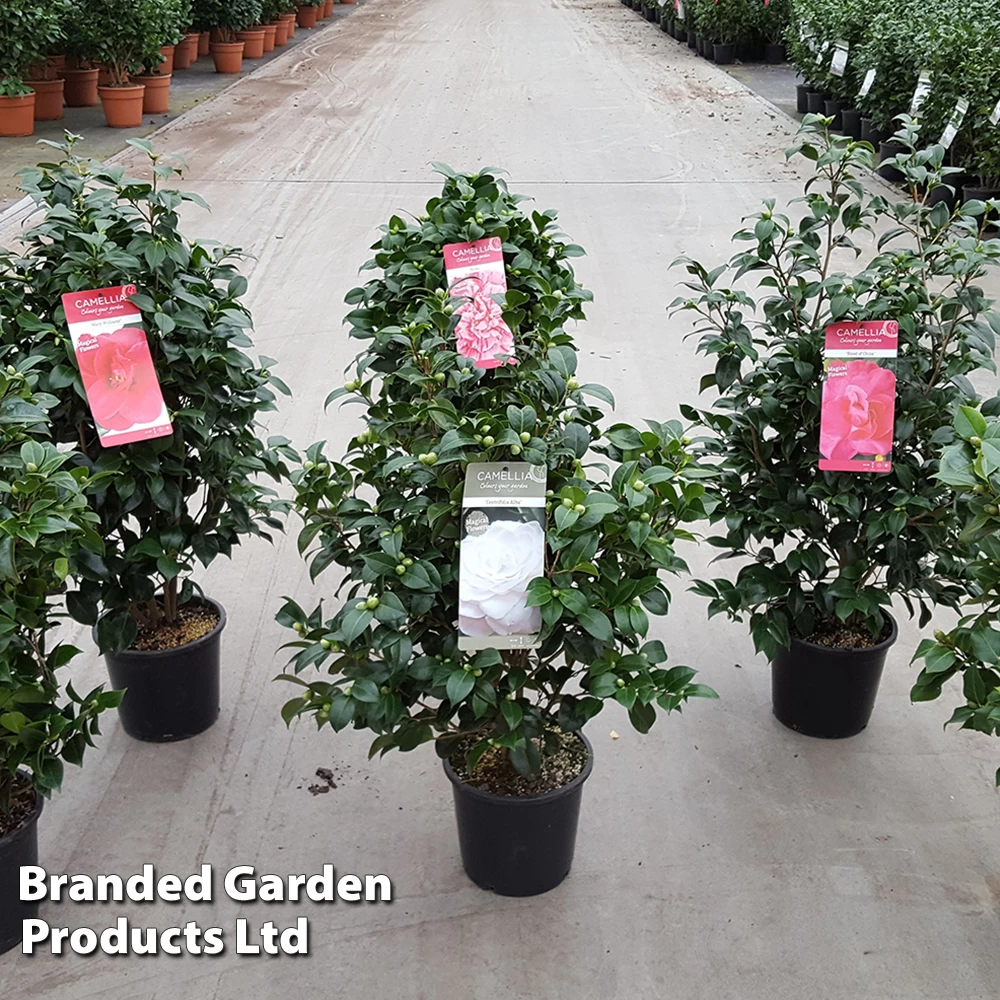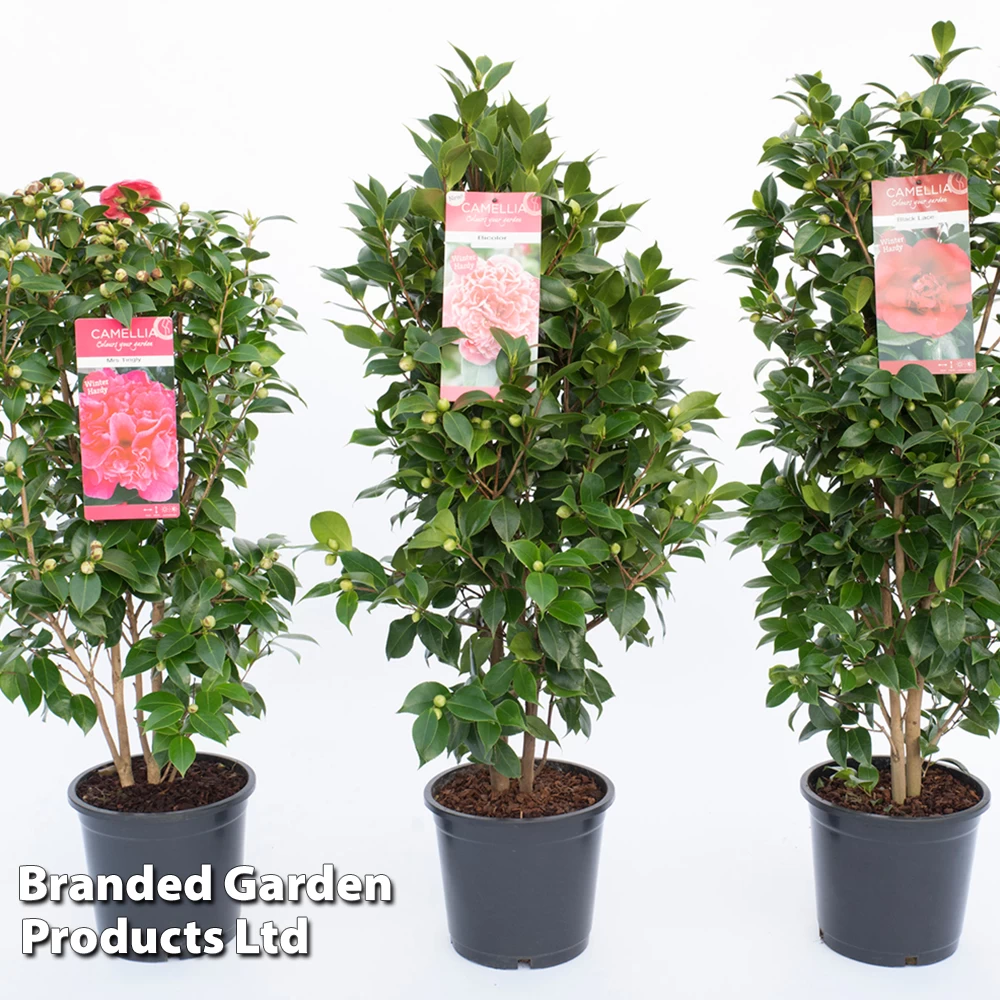 Camellias are a highlight of the spring garden delivering a luxuriant display of flowers from as early as February. These evergreen beauties are prized for their large blooms and eye-catching colours that stand out beautifully against a backdrop of lustrous, dark green foliage. Camellia plants require a moist, well drained, acid soil in a sheltered, shaded position. In areas where acid soil does not naturally occur, grow Camellia plants in patio containers using a mix of ericaceous compost and John Innes No. 3 and position in dappled shade.