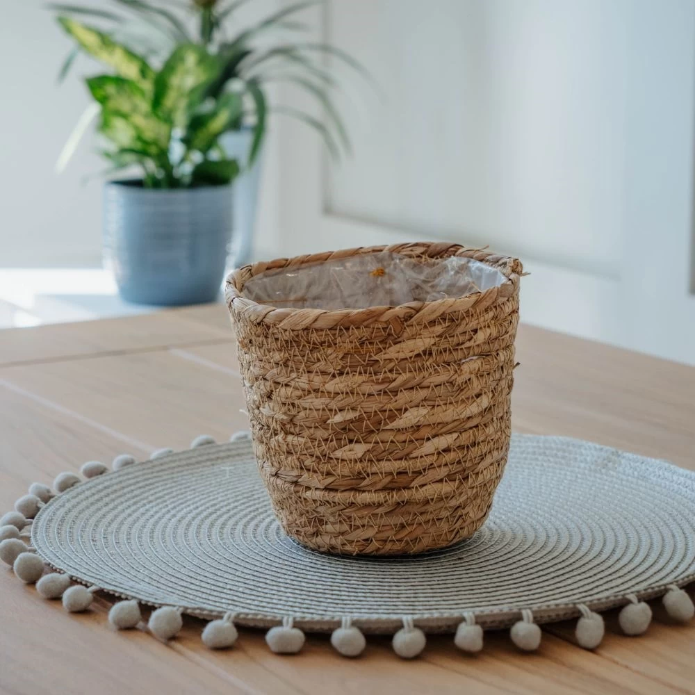 With a natural straw finish, this simple planter is perfect for displaying houseplants at their best. With rustic charm, it will fit comfortably in any style of decor.