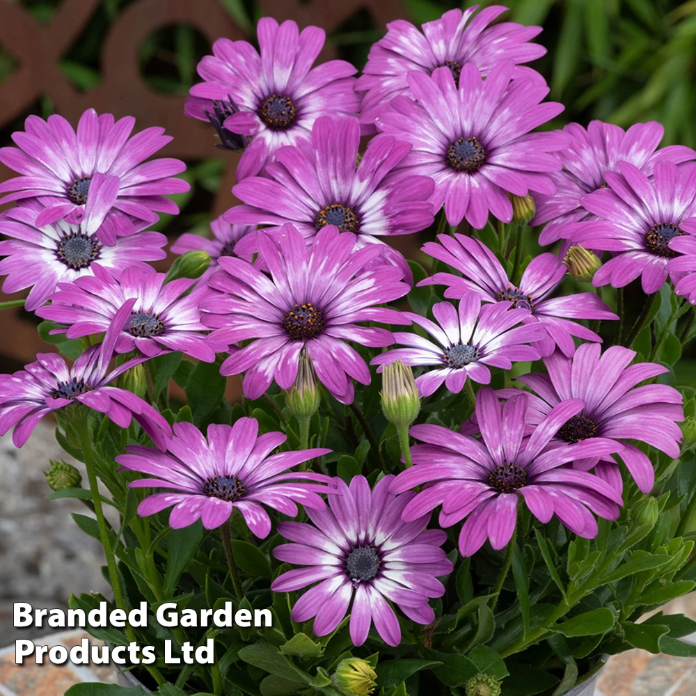 Osteospermums are one of longest flowering of all garden plants. Keep them regularly deadheaded and they will reward you with an abundance of cheerful daisies from early summer until the first frosts. Drought tolerant once established, they’re also supremely versatile – suiting containers, borders, edging and rockeries. They look equally at home in a relaxed, cottage-garden scheme or a dry, coastal garden. Height and spread: 35cm (14in).