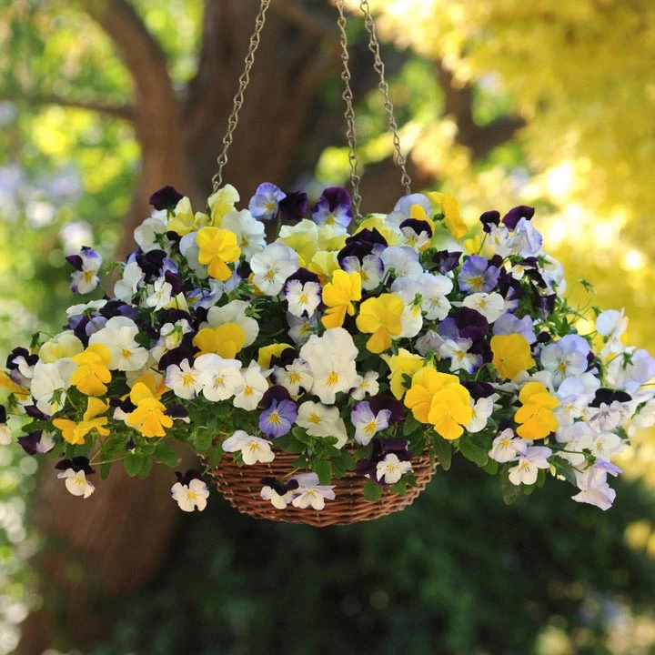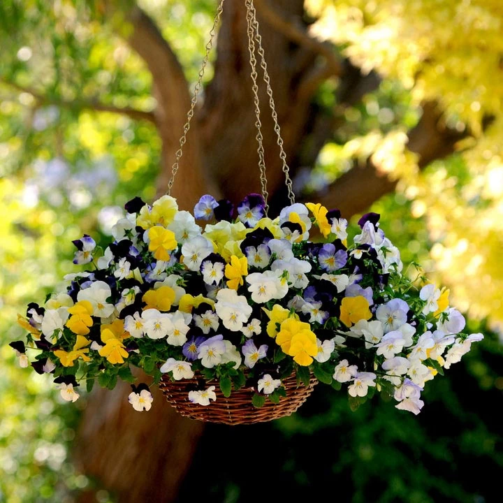 Pansy Plants – Cool Wave Mixed is a really unique collection of gently cascading pansy plants. An outstanding array of colours from captivating yellows and purples to crisp whites and lavenders. A one-off mix in pansy breeding, they are strong growers and produce plentiful flowers, no pinching required. Fill your hanging baskets, container pots or beds and borders with this stunning display of pansies.