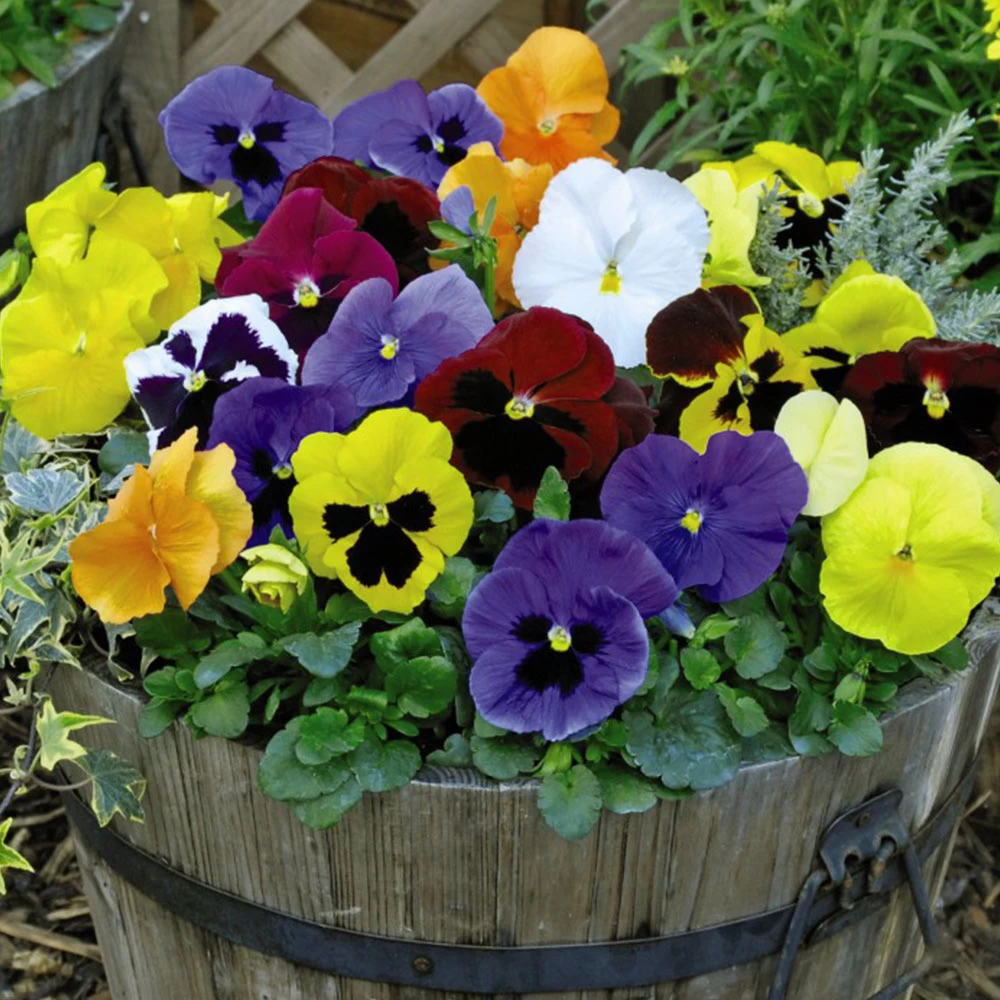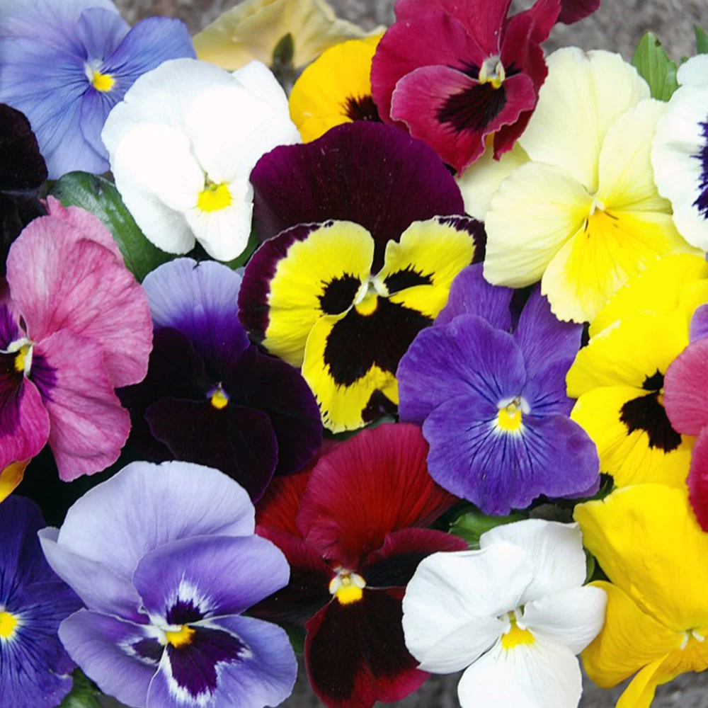 Can flower all year round, this compact variety with a wide range of blotched, clear colours have a good flower size. Flowers winter or summer. Some parts of these flowers are edible.