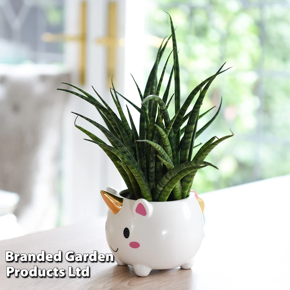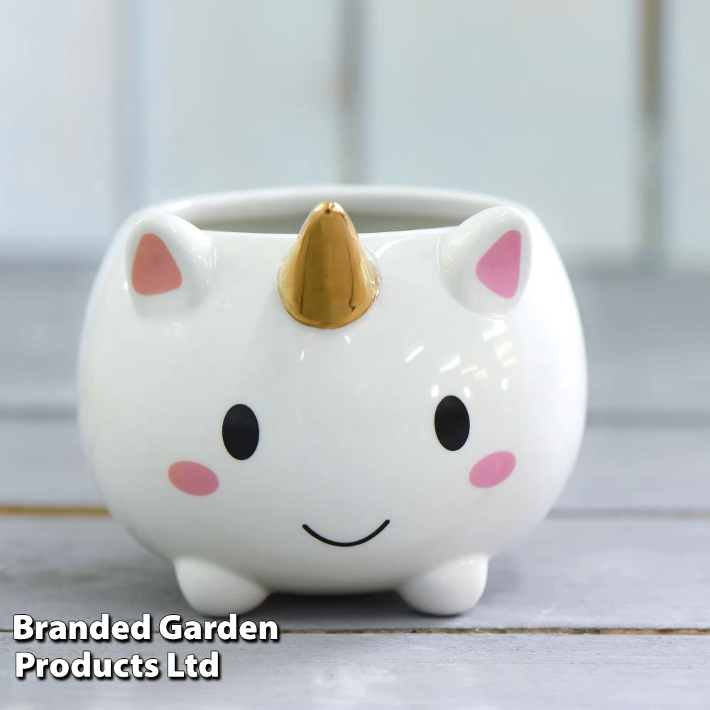 With a shiny, golden horn and rainbow coloured tail, it’s certain to put a smile on faces and perfect for a magical gift so brighten your windowsill with this lovely unicorn planter.