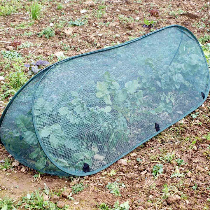 Our Pop-up Triangle Cloches offer convenient protection for your precious vegetables. Quickly and easily popped out and pegged down, they can be equally quickly folded away into their storage bags for the winter. Choose from 4mm mesh net (which protects from birds and insect pests) or heavy duty polythene (which helps pre-warm the soil too). Complete with anchor pegs and zipped storage bags. Medium net cloche – 1.25m (4′) long x 50cm (20″) wide x 50cm (20″) high.