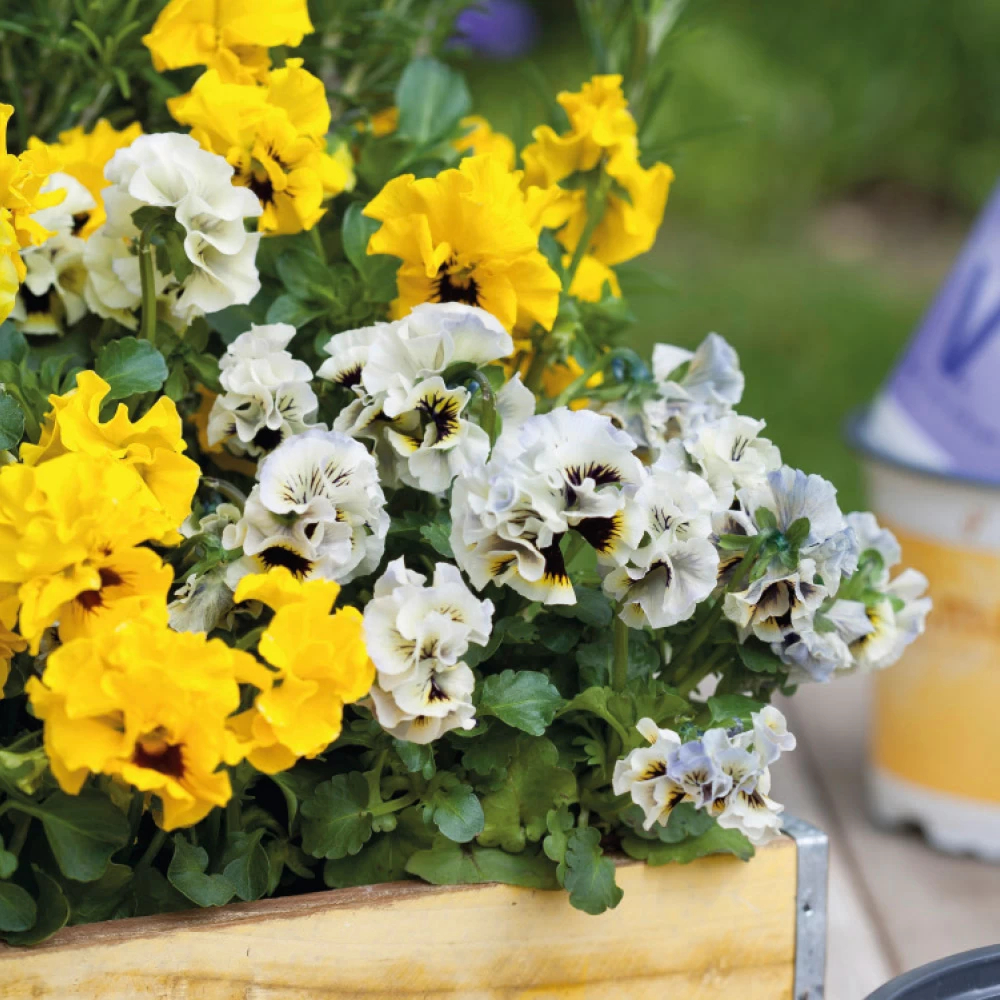These Pansies are ideal for cheering up into your garden in spring. With a fresh colour array of flowers making a bright, clean display!