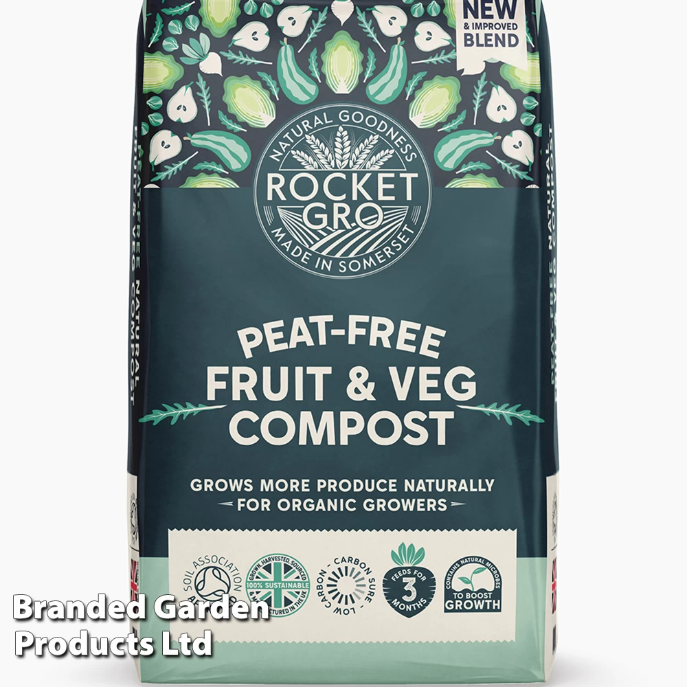 A 100% organic, chemical-free and peat-free compost specially formulated for all your produce growing needs. RocketGro Fruit & Veg Compost contains the perfect balance of nutrients to feed your veg plants, young fruit bushes and fruit trees for 3 months without the need for fertiliser top-ups. This compost will give you high performance, greater yields, healthier and tastier fruit and veg.