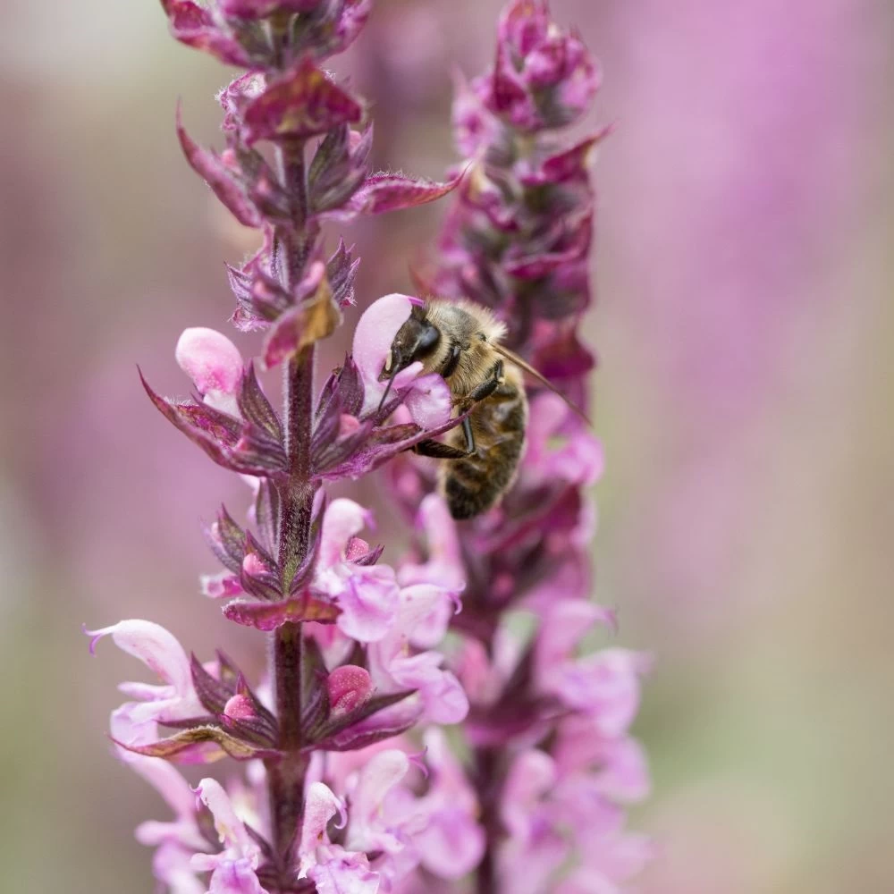 This pink-flowered variety, Salvia nemorosa Caradonna Pink Inspiration, as the more commonly seen, blue plant, has the same upright habit with slender flower spikes.