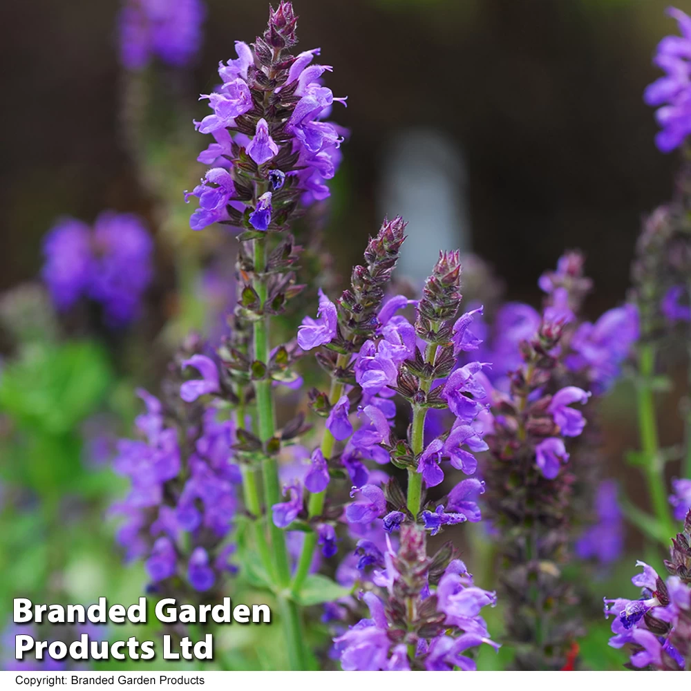 For effortless colour and aroma in your mixed borders Salvia nemorosa ‘Marcus’ is an ideal choice, being easy to grow and requiring little maintenance. With deep indigo coloured clumps of spiky flowers and a delightful aromatic foliage, this short and neat Salvia ‘Marcus’ is great for strong block colour at the front of your borders and with a little trimming during midsummer you can create even more blooms. Nectar rich these Salvia will attract bees and butterflies to your garden, they are deer and rabbit resistant, and will bloom throughout the summer months. Height: 45cm (18″). Spread: 45cm (18″). Salvia plants prefer a moist, but well-drained soil in full sun, although once established they can also be very drought resistant.