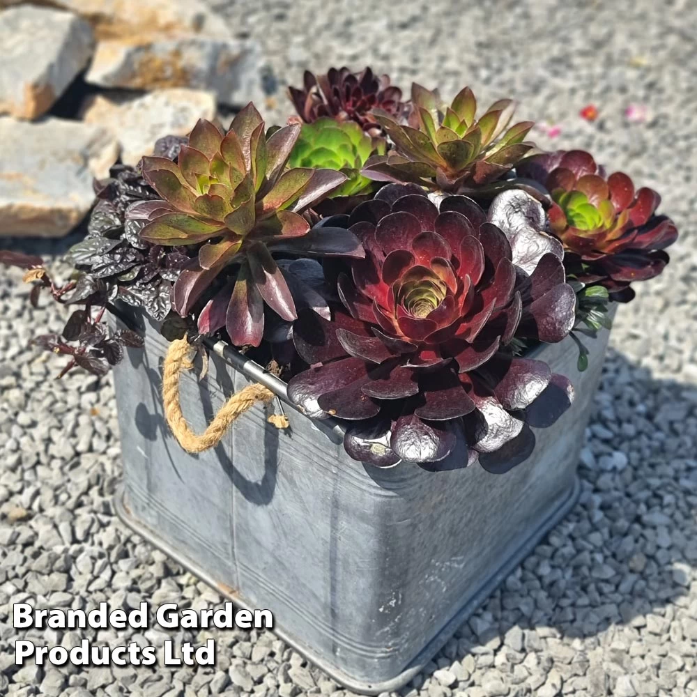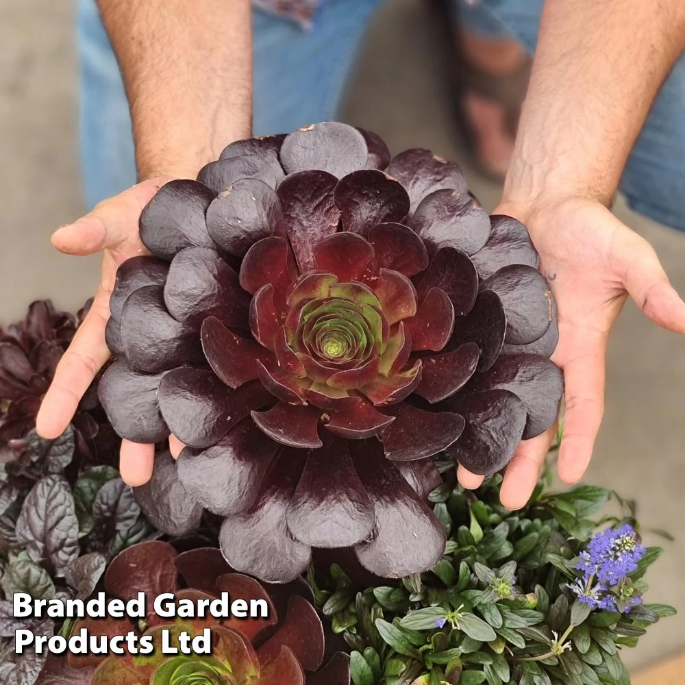 Semponium ‘Destiny’ boasts perfectly geometric rosettes of glossy, fleshy, spoon-shaped leaves in a striking deep purple, almost black shade that is remains just as intense throughout the year. The young plants will soon branch out to form superbly bushy multi-headed specimens. Semponium ‘Destiny’ has been proved hardy down to at least -4C. A horticultural landmark, this outstanding brand-new cultivar is a must-have for any collection! Height and spread: 40cm (16in).