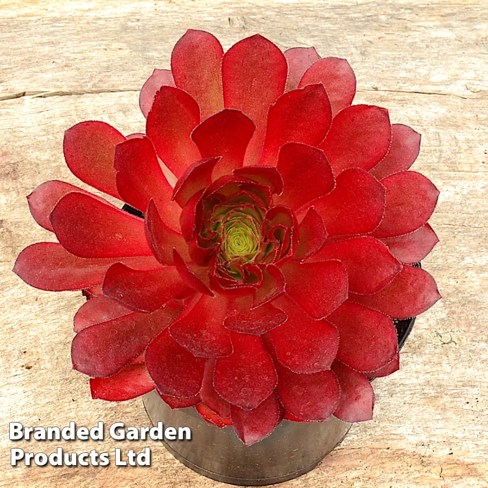 Semponium is a ground-breaking, world-first cross between Sempervivum and Aeonium. Semponium ‘Sienna’ boasts perfectly geometric rosettes of jewel-like bright red leaves surrounding a lime green centre.