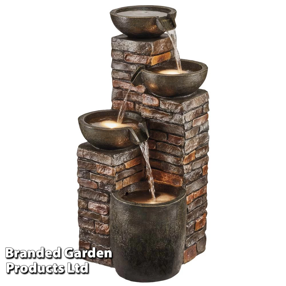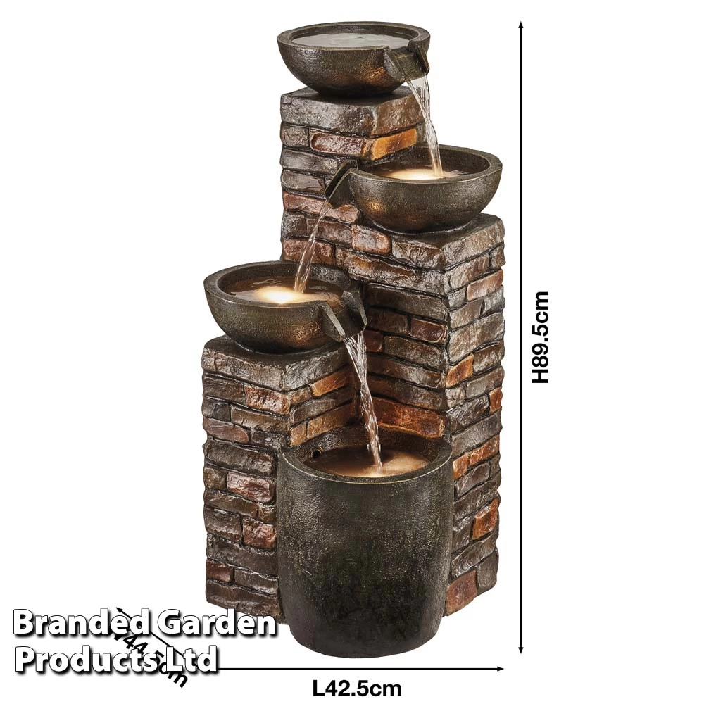 The water feature is self-contained, making it great for those without a mains water supply through their garden or courtyard. Simply fill the basin with water and the hidden pump will recycle it continually. The pump carries the water up to the top and then it cascades back down into the basin in a continuous cycle.