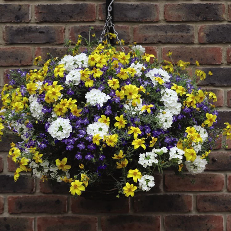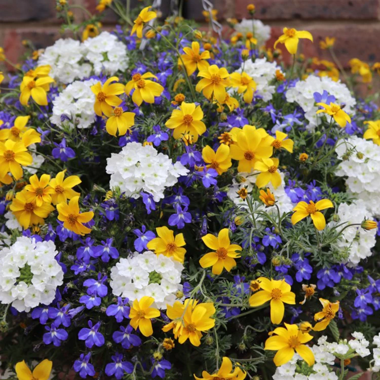 It’s so a super easy option and low maintenance too. All that is required is a regular liquid feed and the blooms will soon burst through! This mix is a wonderful combination of the popular white Verbena, blue Lobelia and yellow Bidens varieties, so you get three fabulous flowers all in one. Each young plant is effectively 3 plants pre-planted into one plug! This means in a basket that it soon becomes one big ball of vibrant colour and provides interest and structure where ever it grows.