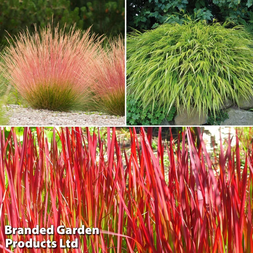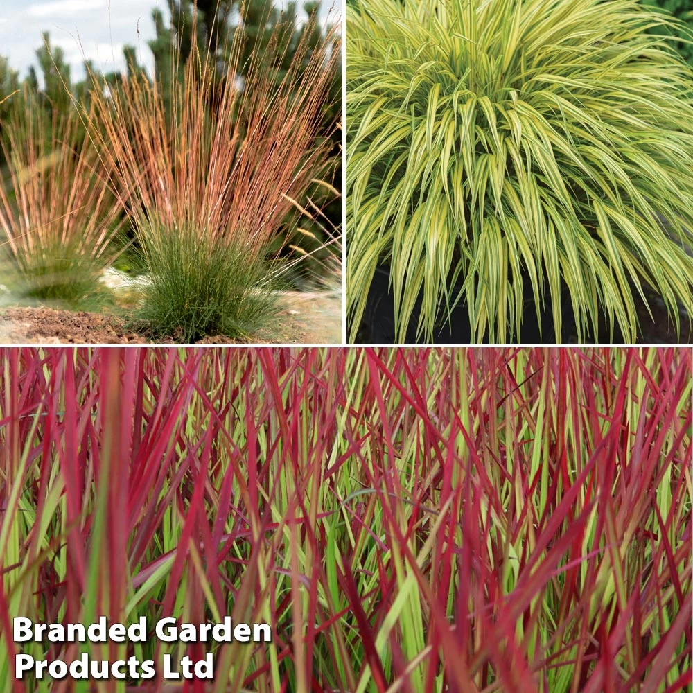 A stunning mix of three drought-busting grasses, selected for their superb colour, texture and habit. These adaptable grasses bring colour and movement to borders, rockeries and gravel gardens where they provide useful ground cover. Alternatively, plant them into patio containers as a striking textural contrast to other perennials.
