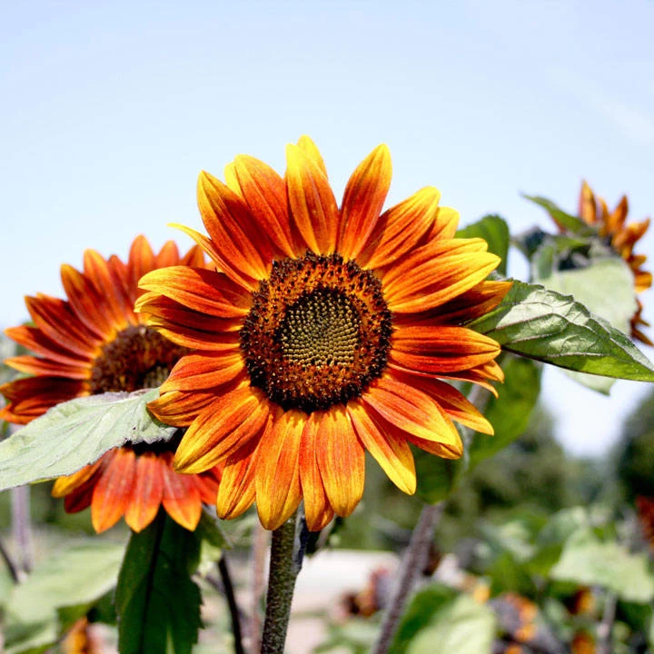 Sunflower (medium flower red) is a sunflower with branched stems and medium-sized flowers in shades of red, pale red and dark red. This sunflower is a good cut flower and bee and butterfly friendly. The plants can grow up to 2 metres high. Flowers August-September.