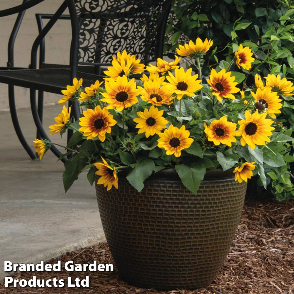 It’s taken 8 long years for our breeding team to perfect Sunflower SunBelievable™ ‘Brown Eyed Girl’. The vision has become a reality; here’s a half-hardy annual sunflower for beds and containers that will produce 1,000 flowers over a season! This brand new hybrid is sterile so it puts all its energy into flowering rather than setting seed. It’s super easy to grow and will bounce right back if you forget to water it.