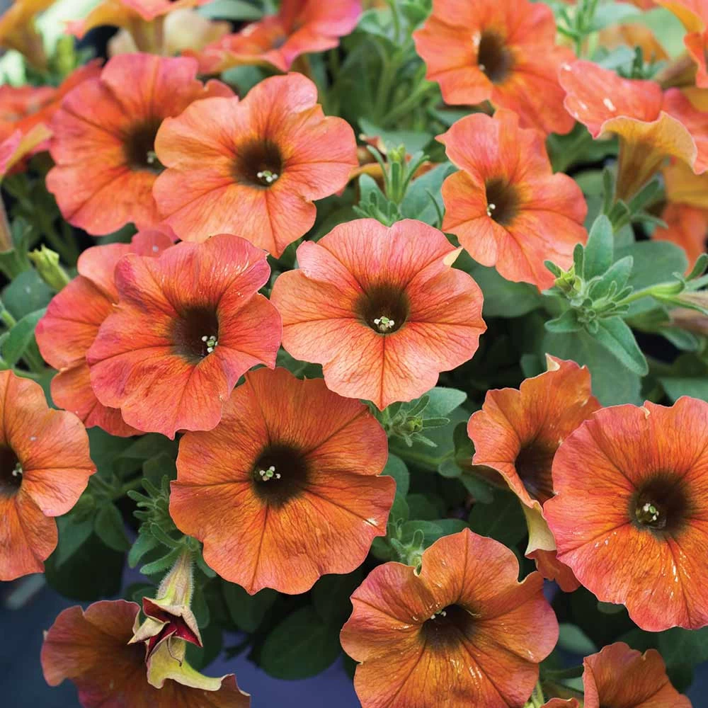 Mildew also won’t get a look in, plants are tough and tolerant, staying green and healthy all summer long. Super Petunias will give an extended show too, with blooms from June to September! Height 20-30cm (8-12″); spread 40-50cm (16-20″). Cinnamon – spicy orange colour.