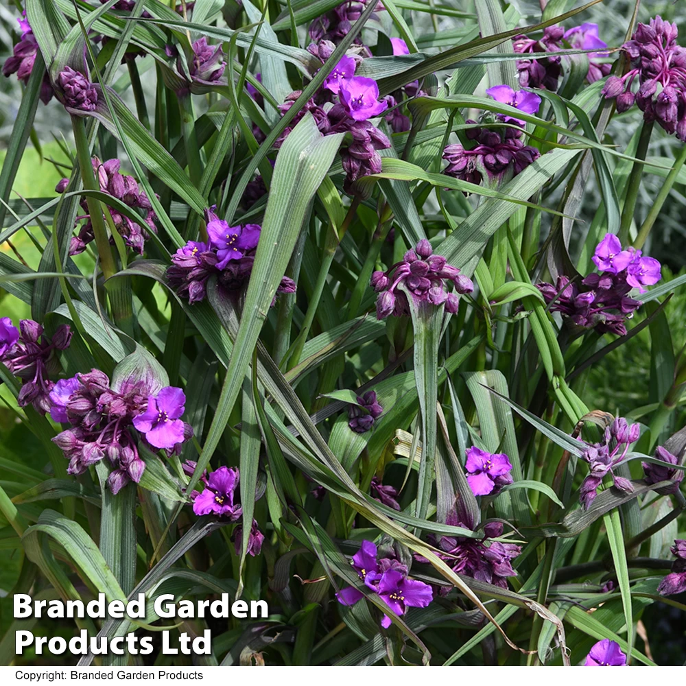 Hardy Tradescantia are useful clump-forming border plants with unusual 3-petalled flowers produced over a long period, nestled amongst long, sword-shaped evergreen leaves. A new breakthrough in spiderwort breeding, Tradescantia ‘JS® Brainstorm’ produces masses of vivid violet blooms continuously over an astonishing six months – longer than any other variety. Contrasting yellow stamens add to the eye-catching display. This easy-care perennial is versatile, low-maintenance and hardy down to -30C. Height: 50cm (20in). Spread: 40cm (16in).