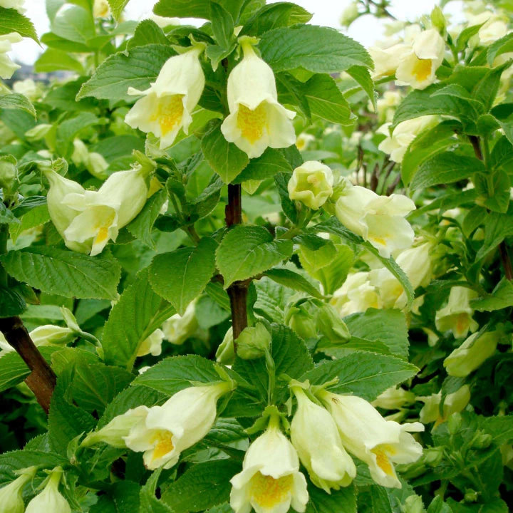 A striking and reliable variety, this weigela produces clusters of orange throated creamy-yellow bell-shaped flowers atop a mound of upright leafy stems. Flowers May-June. Height 150-200cm.