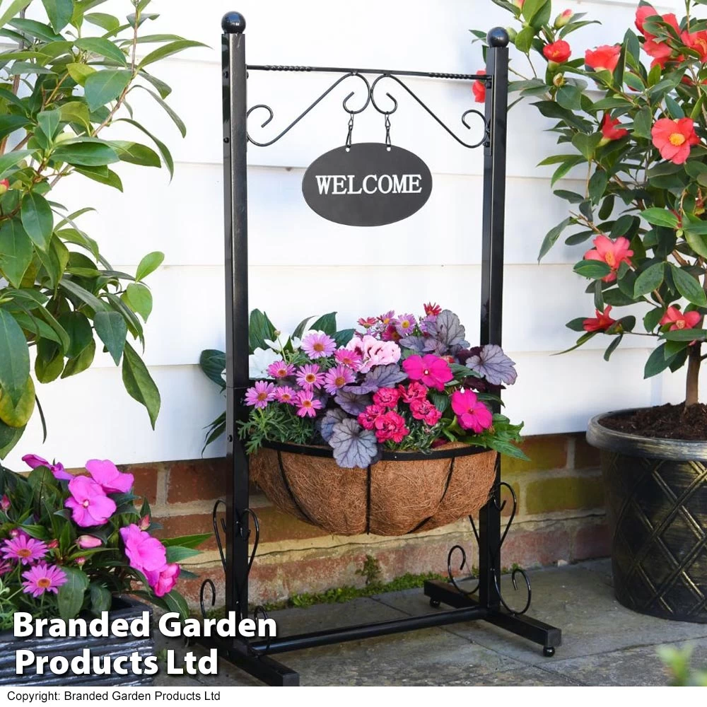 Create a warm welcome with this stylish planter with signage, perfect for placing in an entrance way to welcome guests into your home, sits pretty on a pathway or drive and provides a charming display for a courtyard or cottage garden.